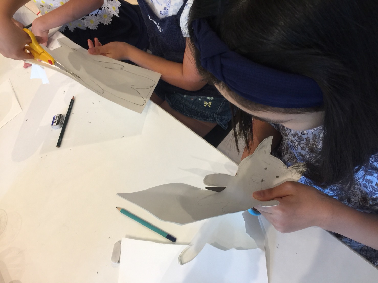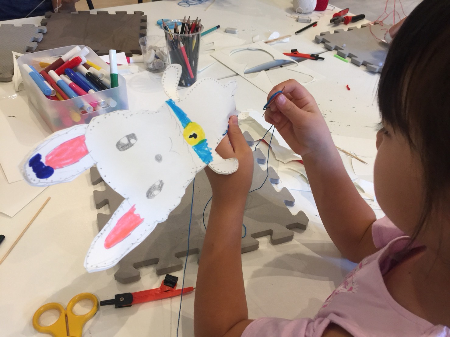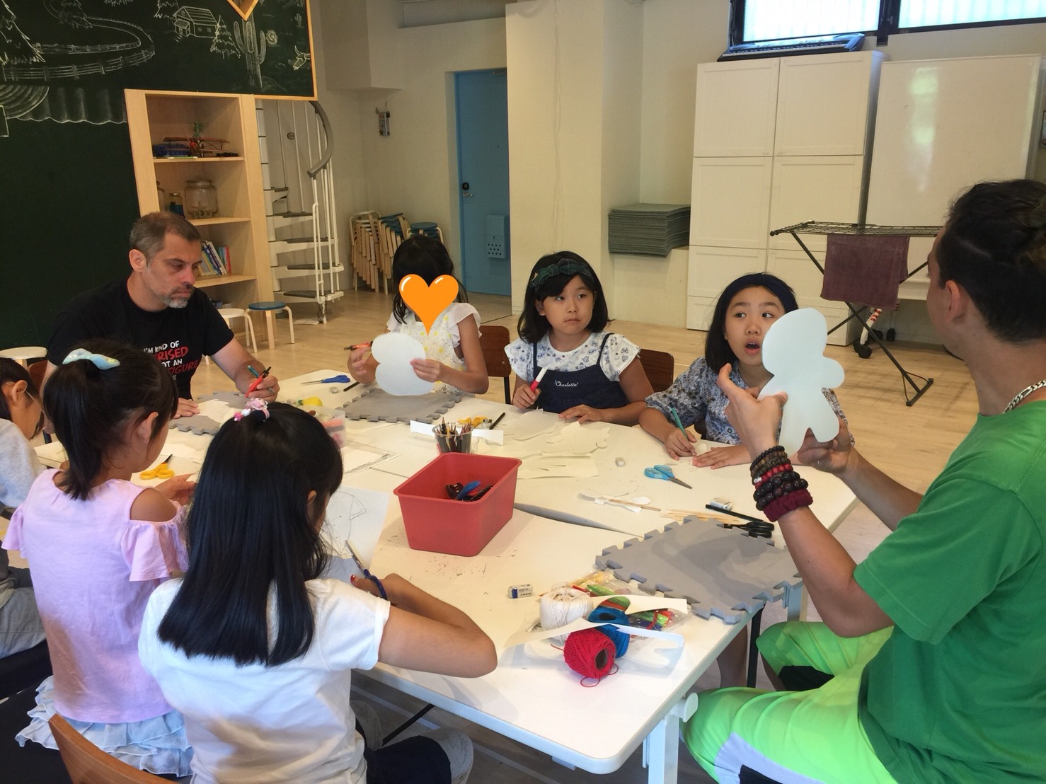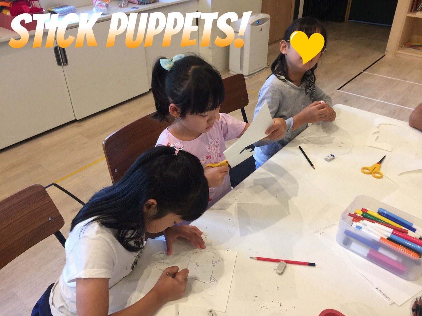 サマースクール24日目のイベントは”Stick Puppets”(アイスの棒人形)を作りました。