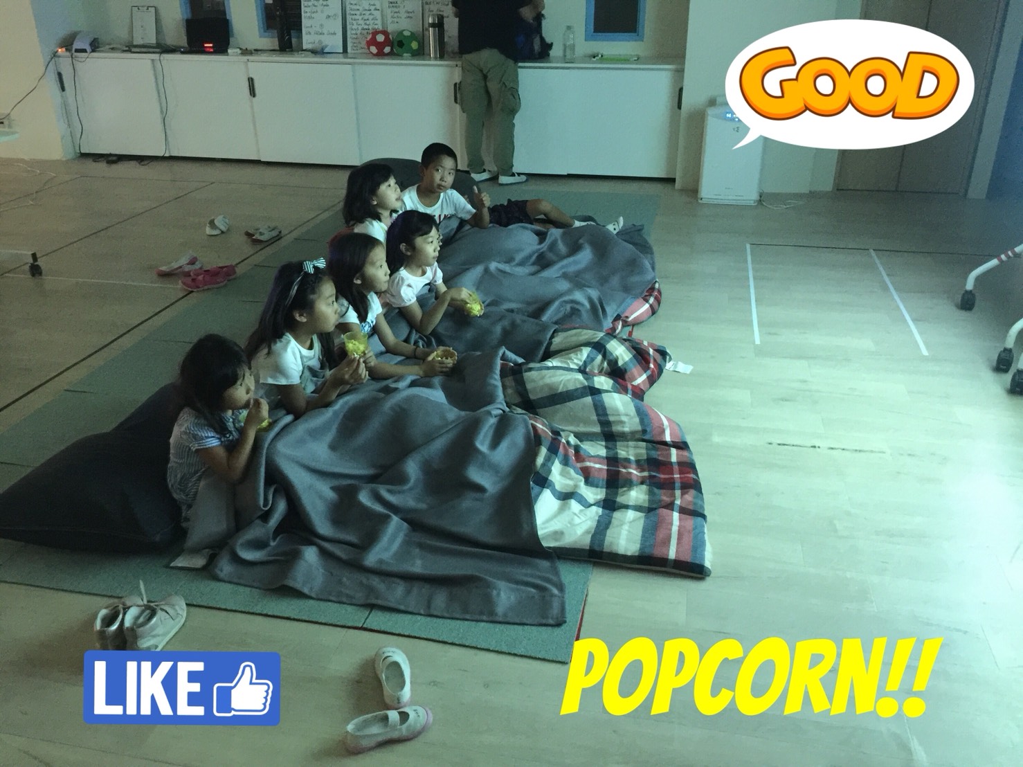 サマースクール最終日のイベントは”Popcorn & Movie Day”(ポップコーンと映画の日)でした。