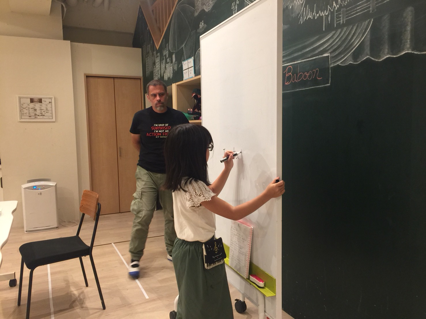 気になるアルファベットや単語、わからなかったら先生達に書き方を聞いて練習してみてね!