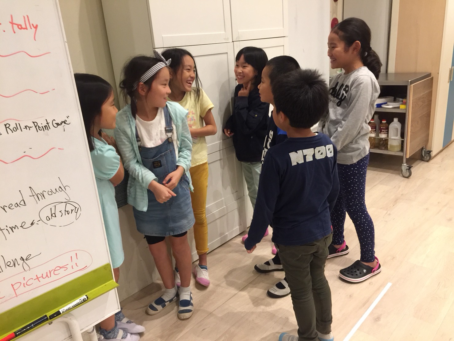 次はVerb(動詞)にingを付け加えて現在進行形を練習しました。