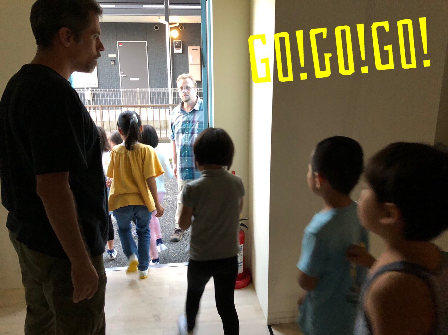 少し公園で遊んで、スクールに戻ったら水分補給をして10分間の休憩(フリータイム)!