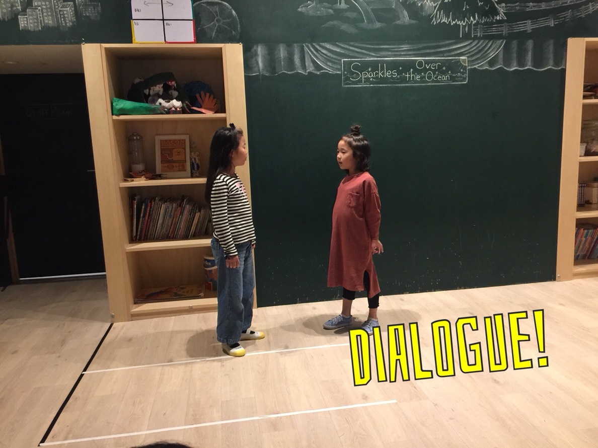 Dialogueの発表もみんな慣れてきていますね。学校での出来事を決められたセンテンスを使って会話を考えて発表します。