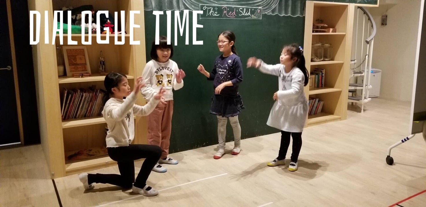 それぞれのお題から、どんな会話が生まれるかな?どんなシチュエーションがあるかな?を想像して、各チームが自分たちの会話を考えて、話し合って、練習をして、みんなにミニ劇として披露してくれています。