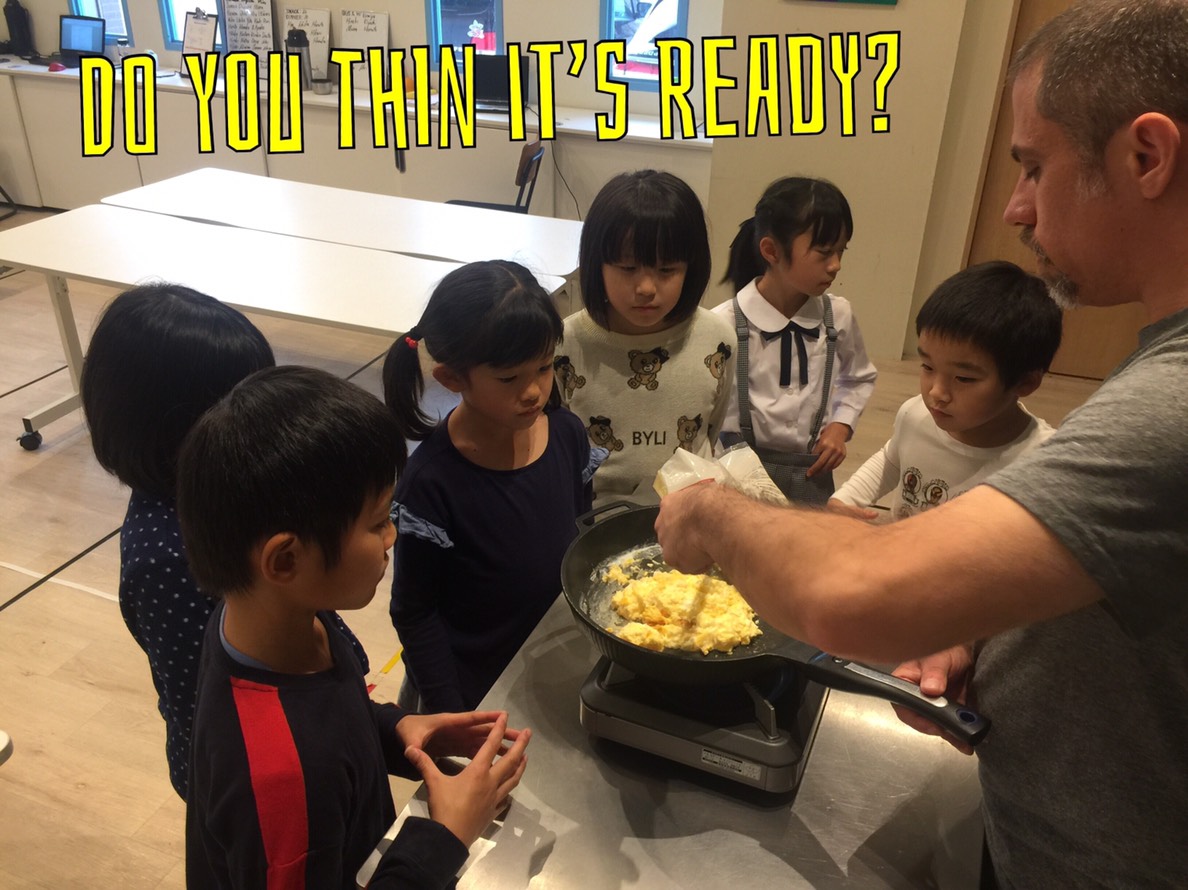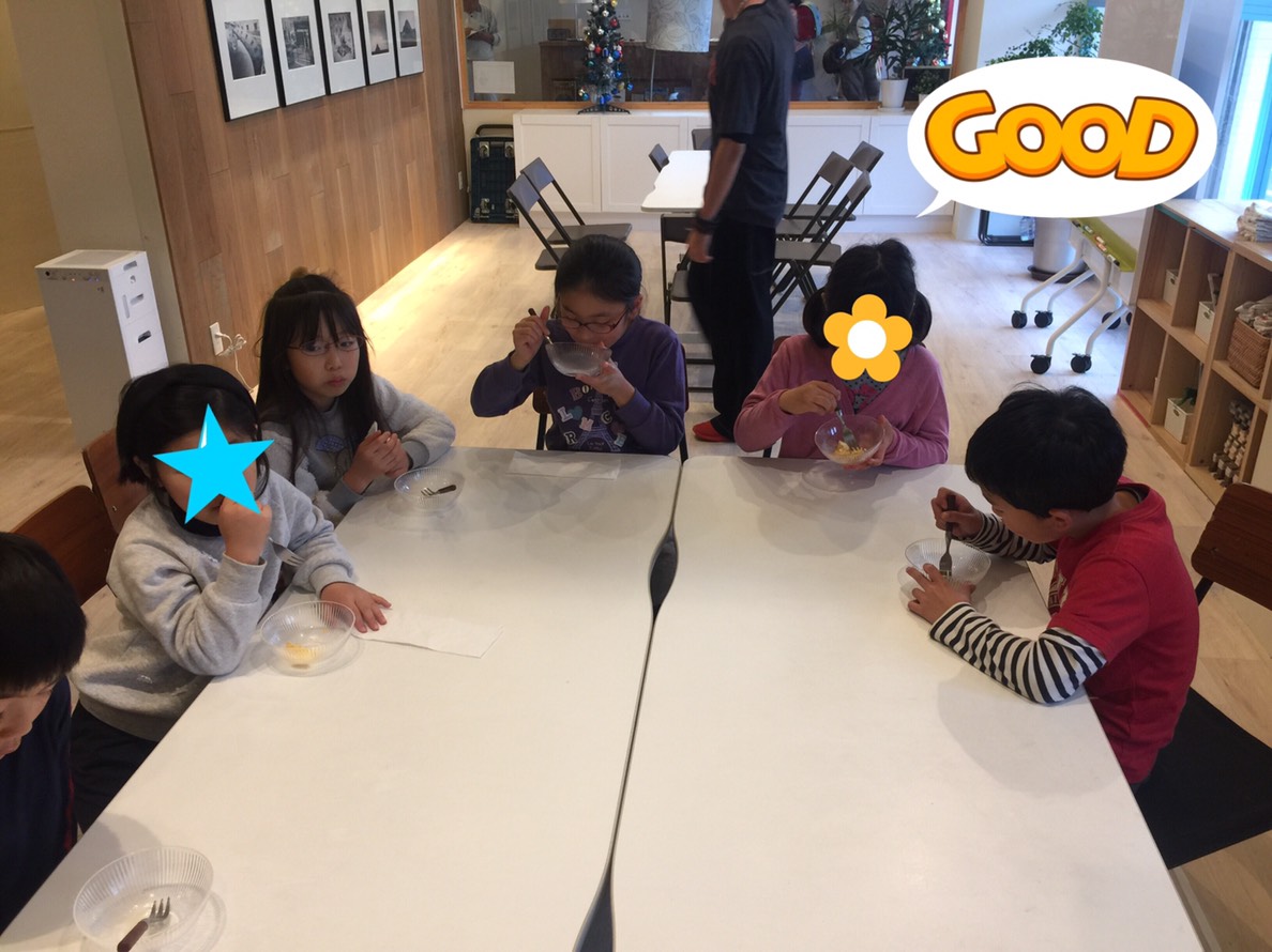 今日は”Workshop”(ワークショップ)の時間に”Cooking”(クッキング)をやりました。
