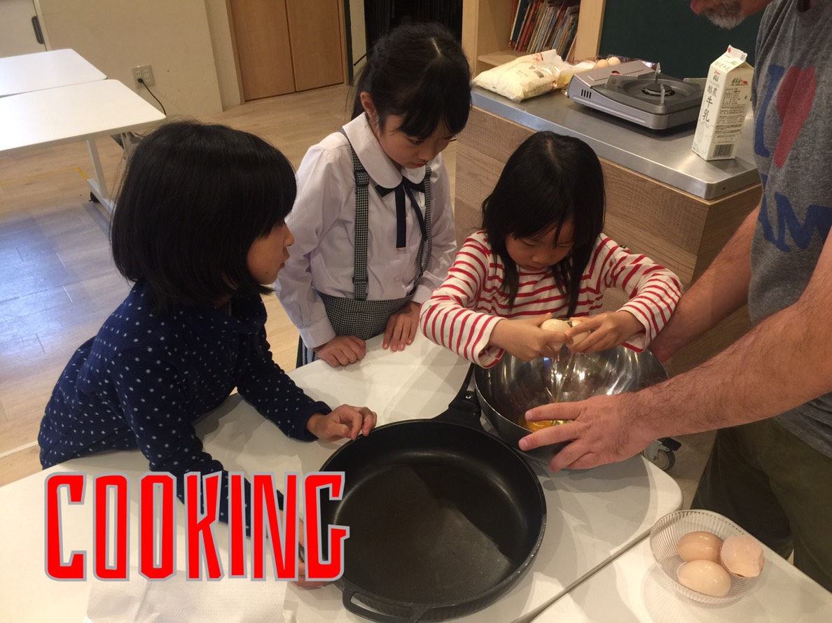 今日は”Workshop”(ワークショップ)の時間に”Cooking”(クッキング)をやりました。