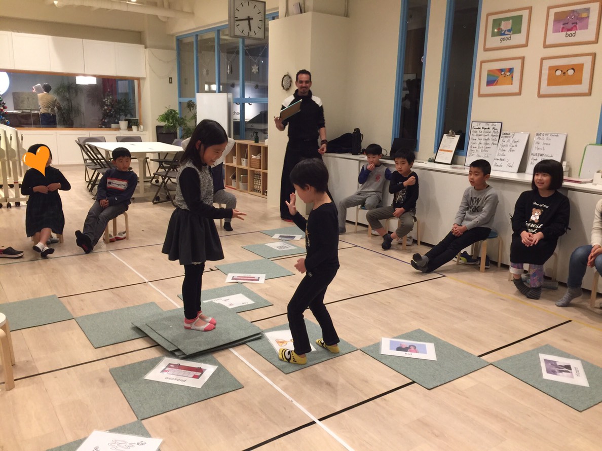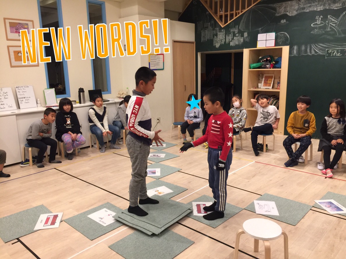 これらの言葉を先生たちが”Dialogue”で使用するセンテンスの中で使ったり、ゲームに登場したりして、単語、発音、使い方を身につけていきます。