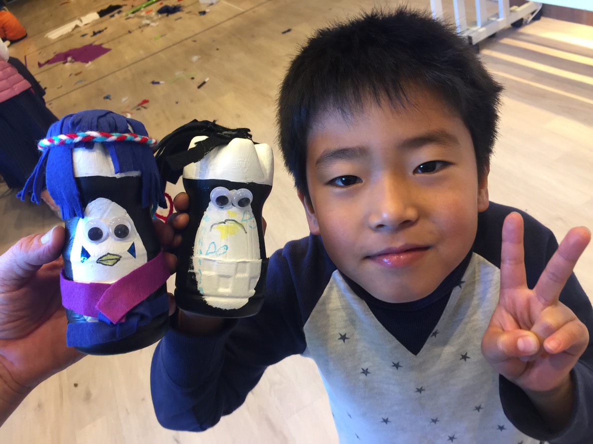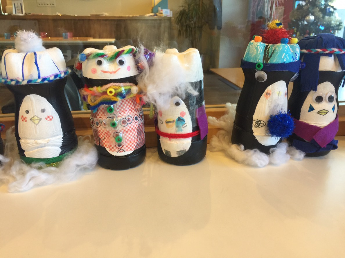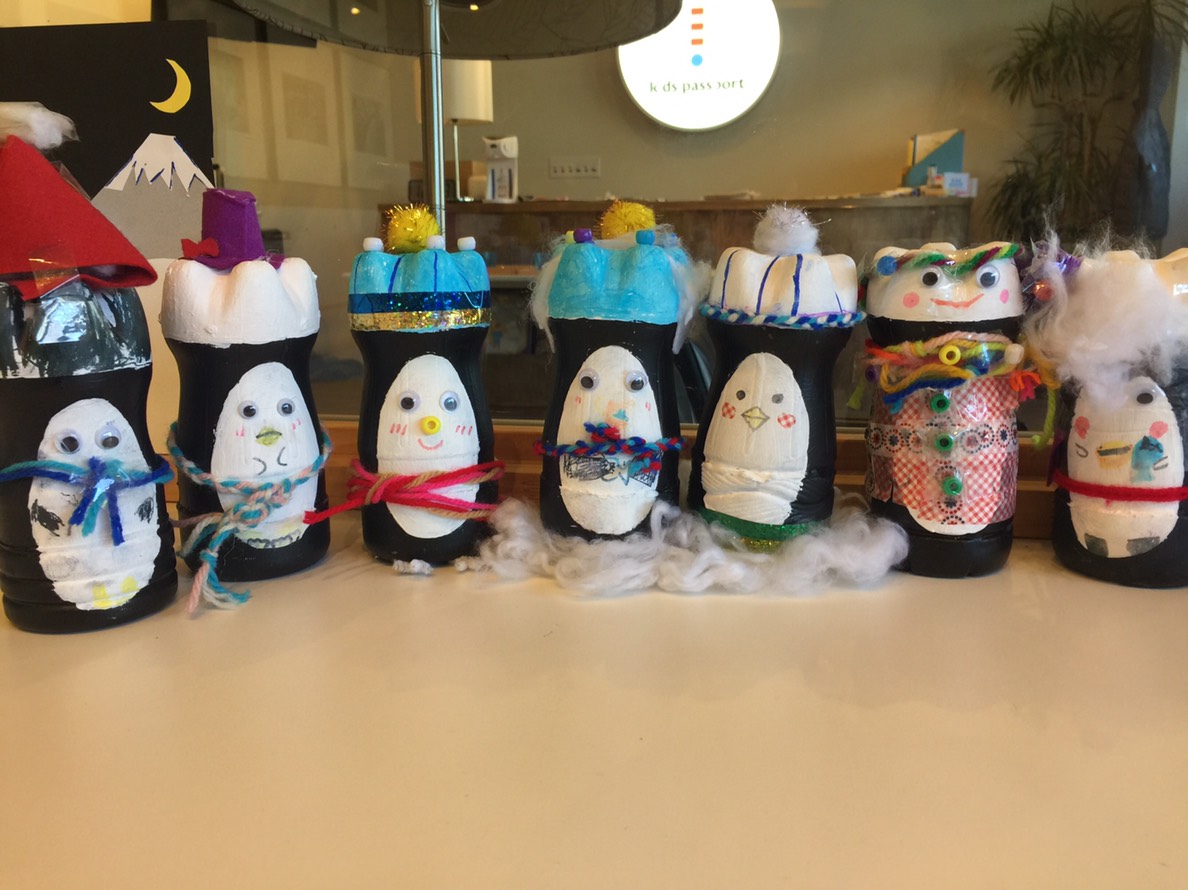 ウィンタースクール4日目の今日は”PET Bottle Penguins”(ペットボトルのペンギン)を作りました。