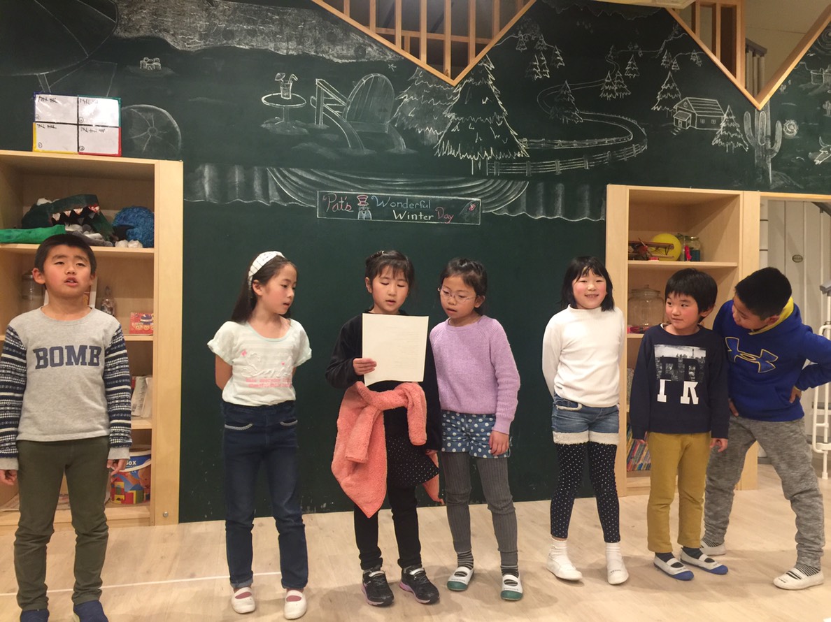 “Homework time”(宿題の時間)と”Between six and six-thirty.”(6時から6時半までの時間)に、2月に行う”Speech contest”(スピーチコンテスト)の練習時間を設けています。