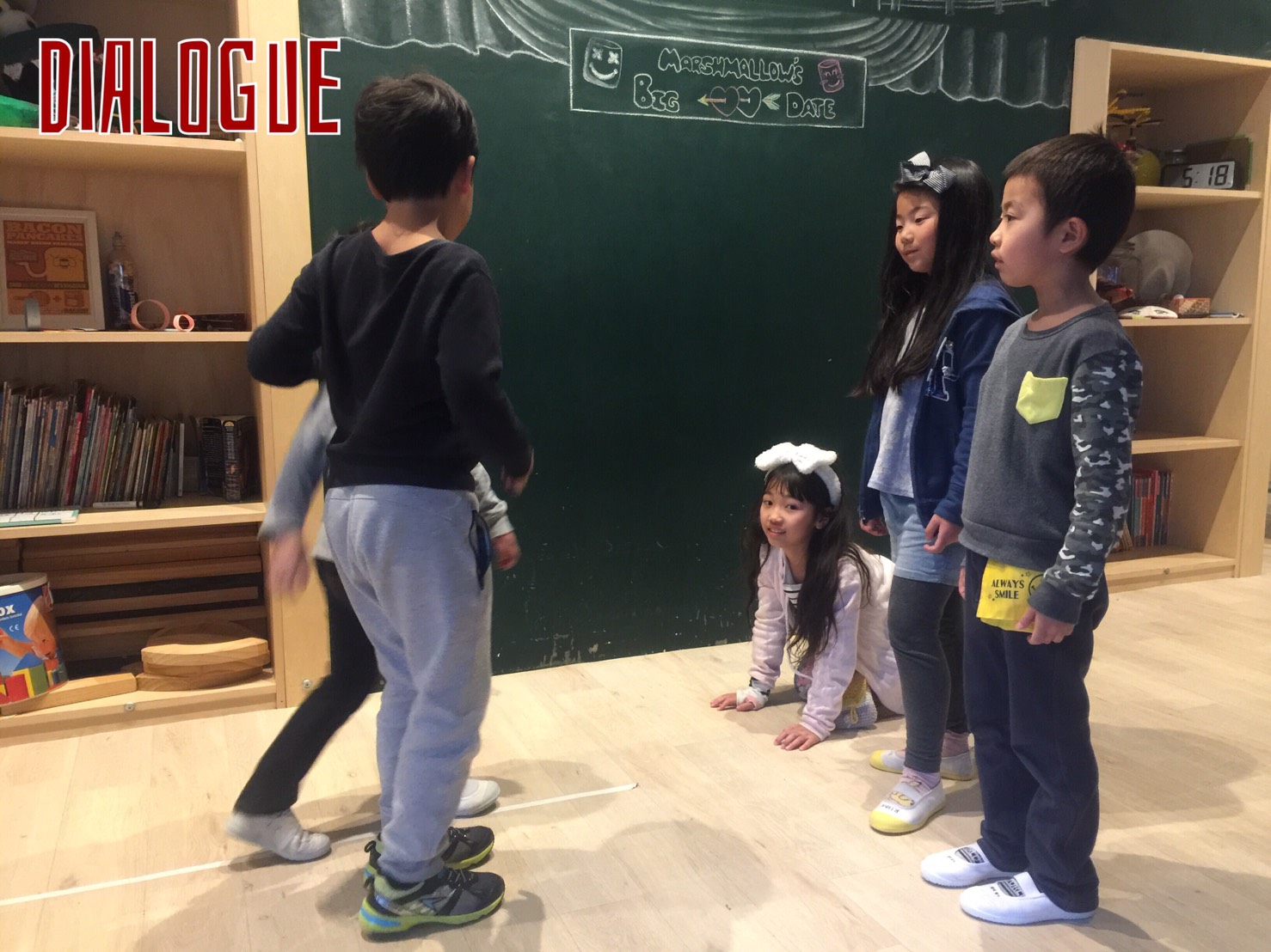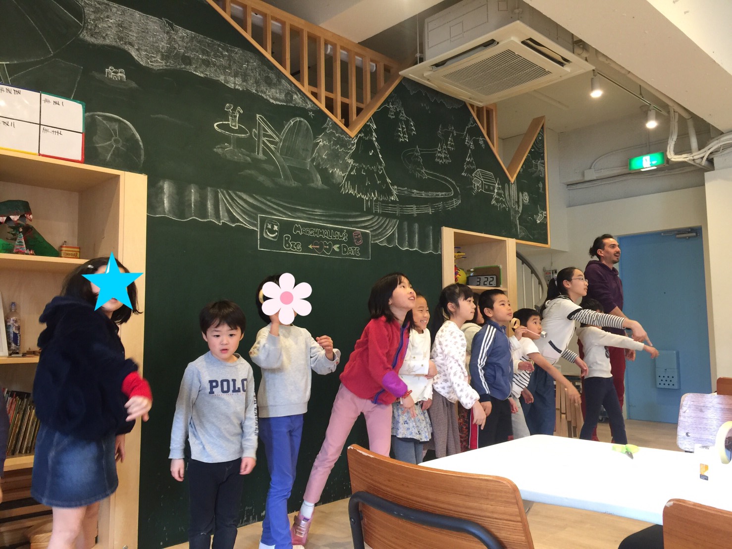 声や表情を変えて、感情を込めてストーリーを読んでくれる先生のお手本を聞いて、みんなも同じように表現力豊かにストーリーを言えています。