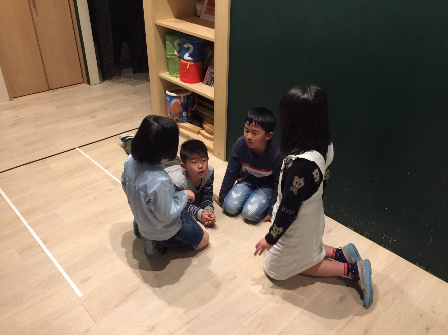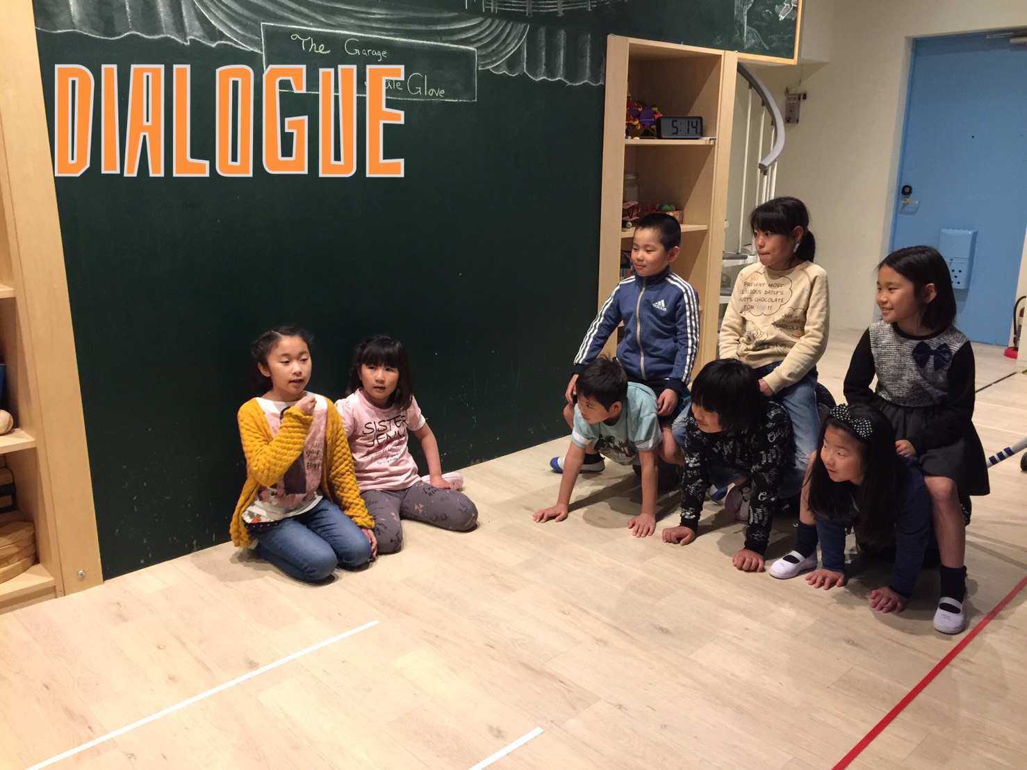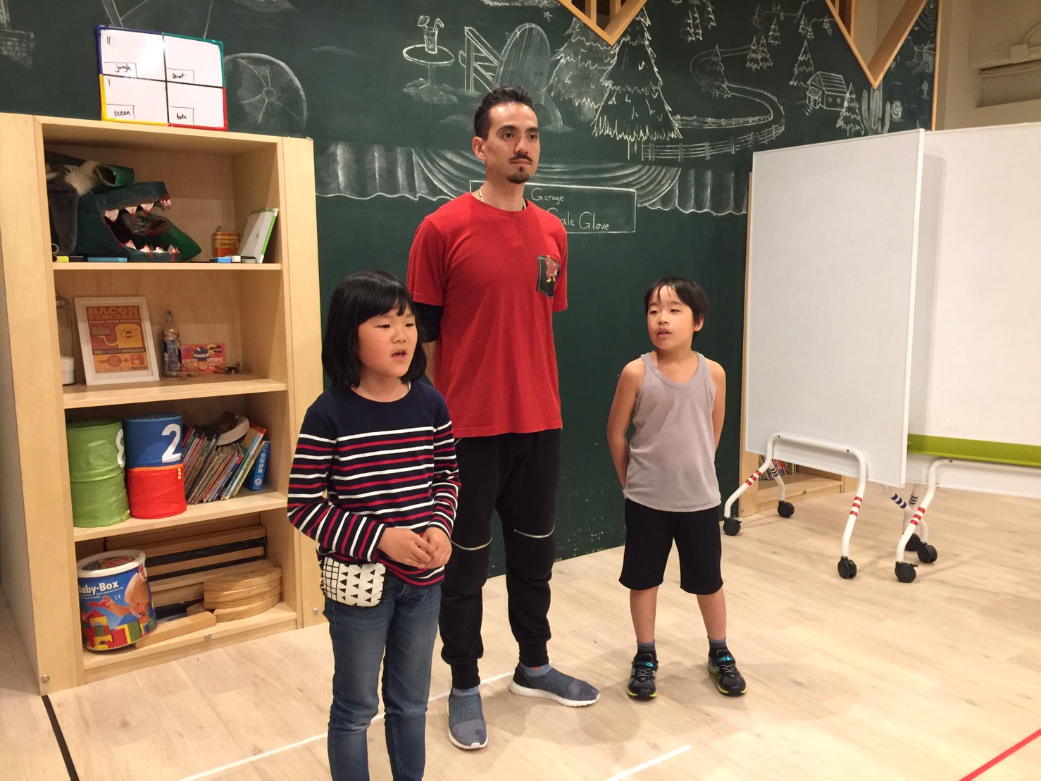 お兄さん、お姉さんたちが”Dialogue”の準備と練習をしている間、小さい生徒さんたちはCasper先生と一緒に基礎レッスン。