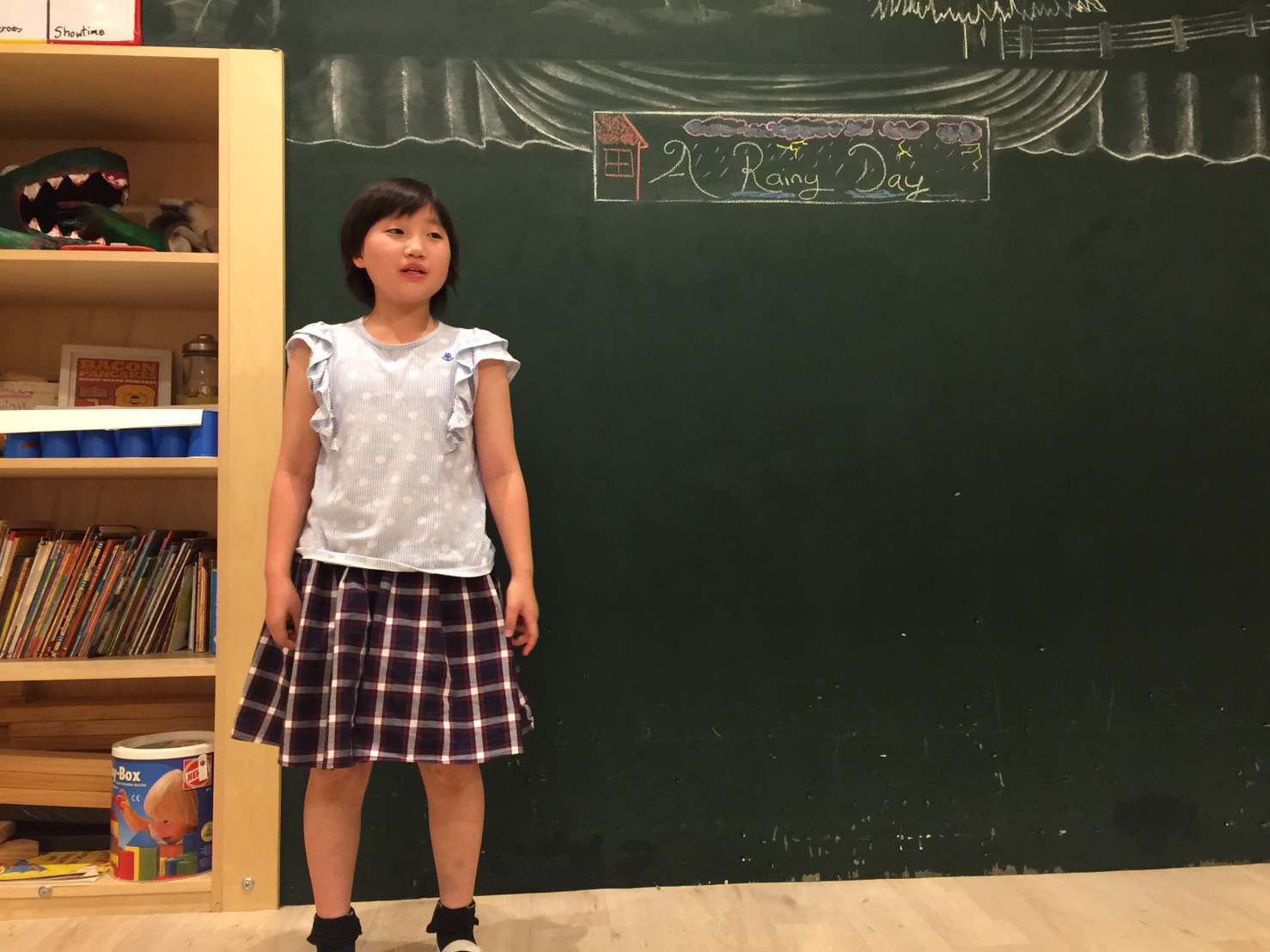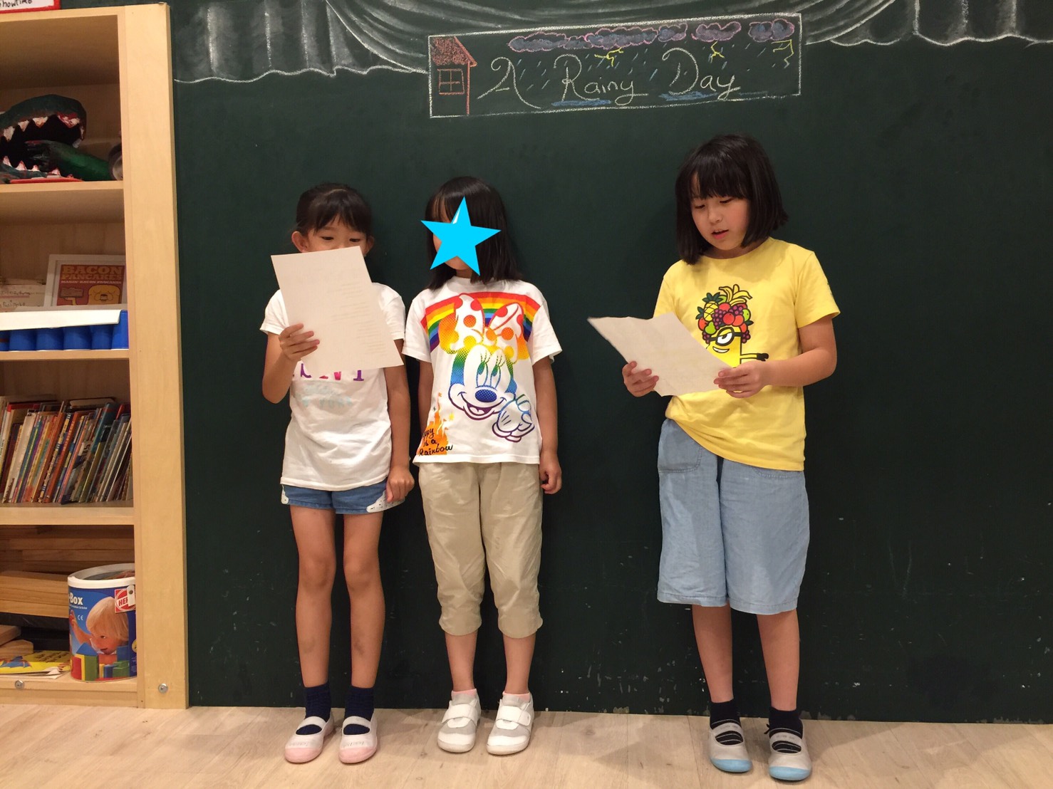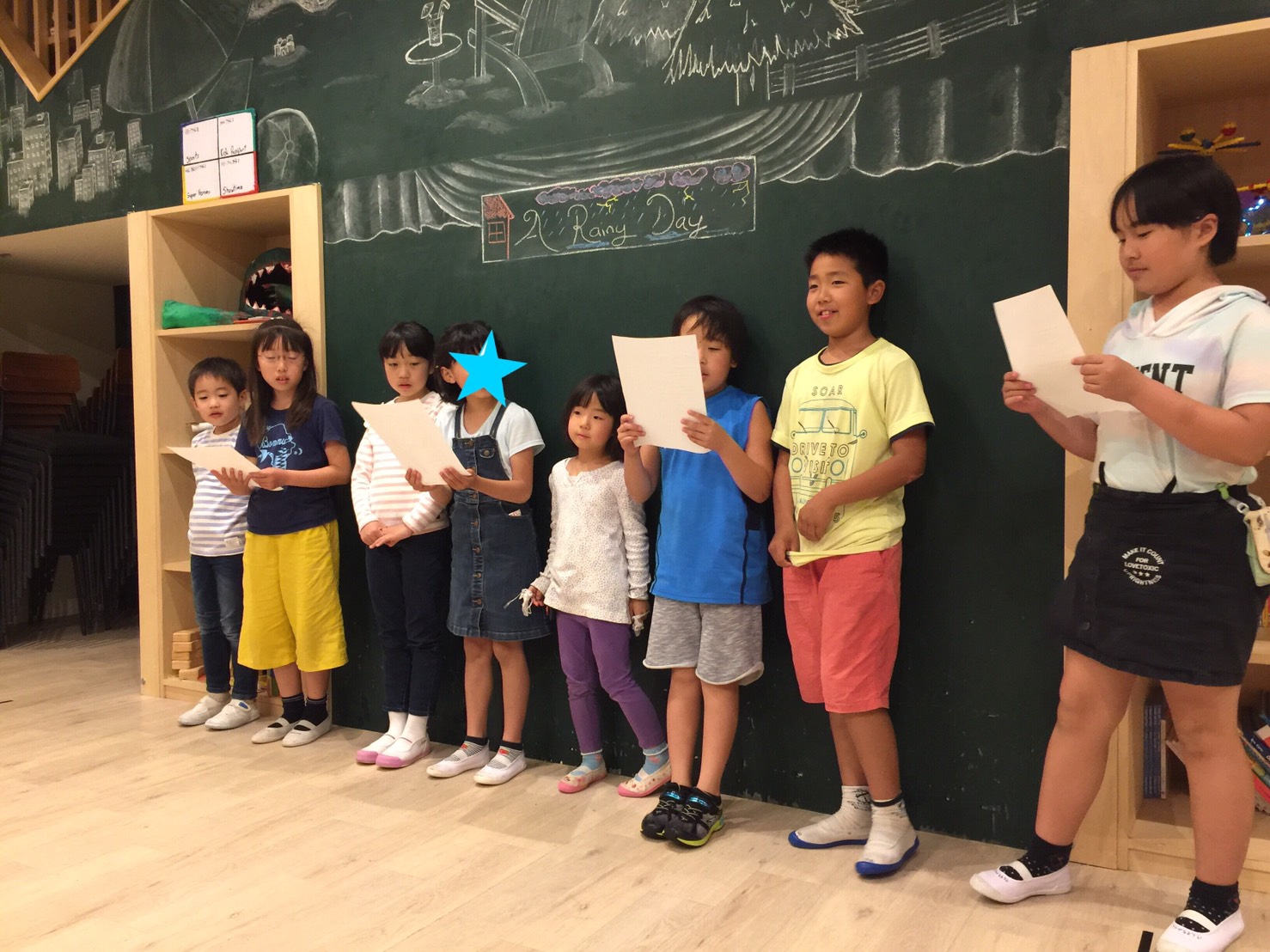 リーディングの練習になるのはもちろん、前に出て発表するということにも慣れていきます。