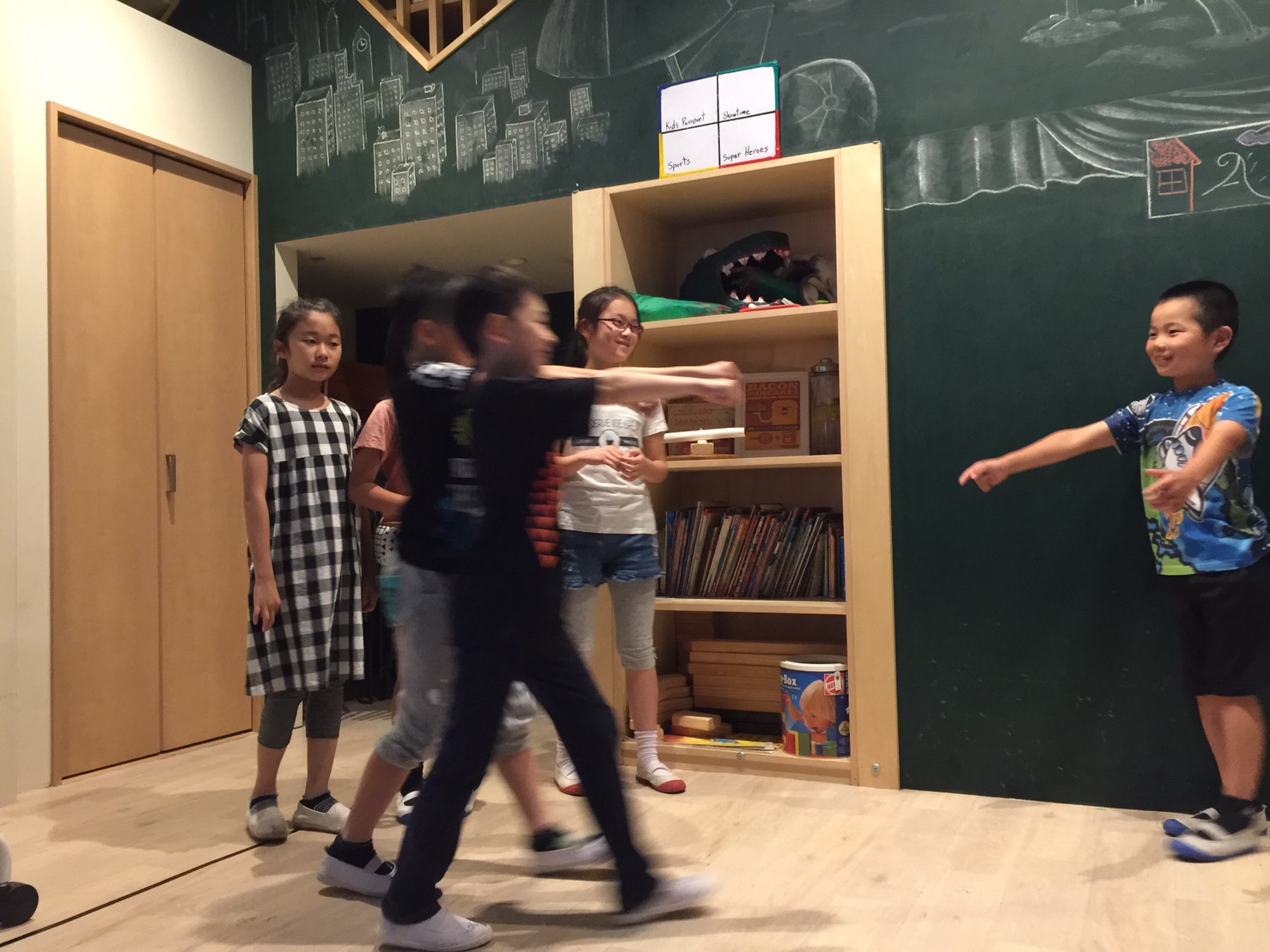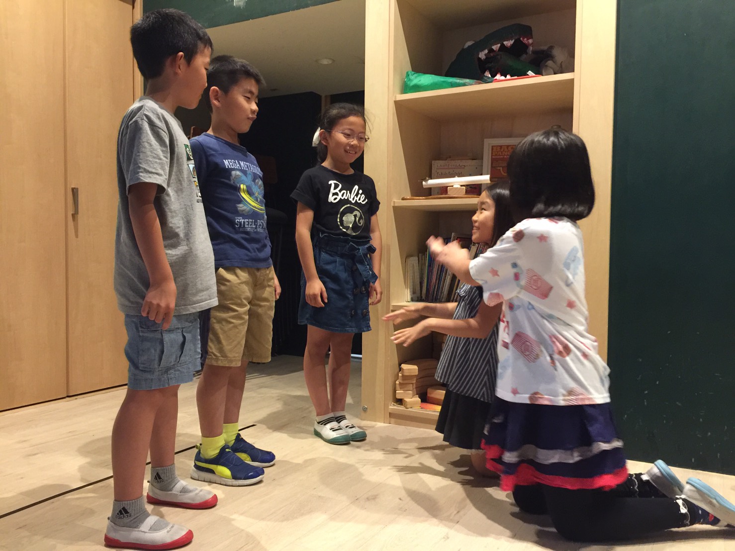 それぞれのテーマに沿ってチーム内でストーリー、セリフ、ジェスチャー等を自分たちで考え、練習をして発表をします。