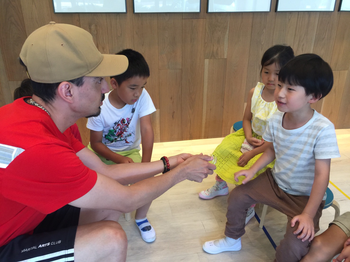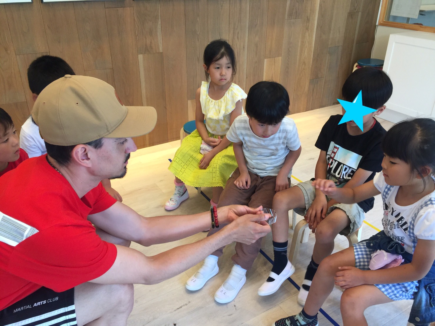 お迎えに来たバイリンガルの先生とドライバーさんに大きな声で