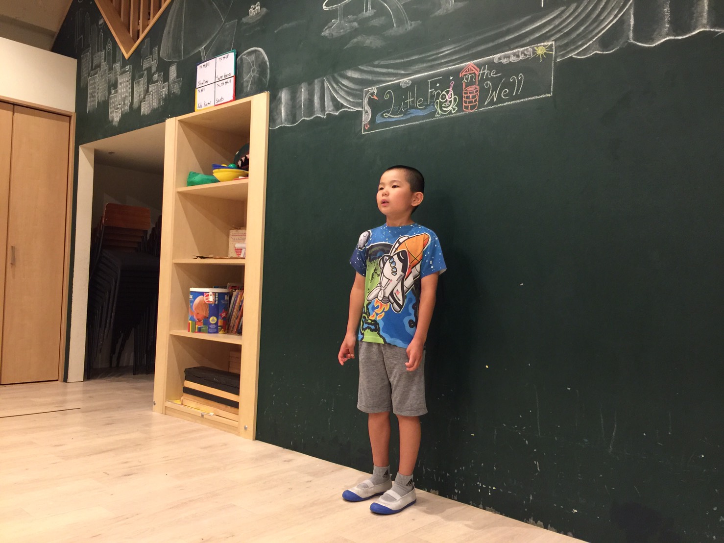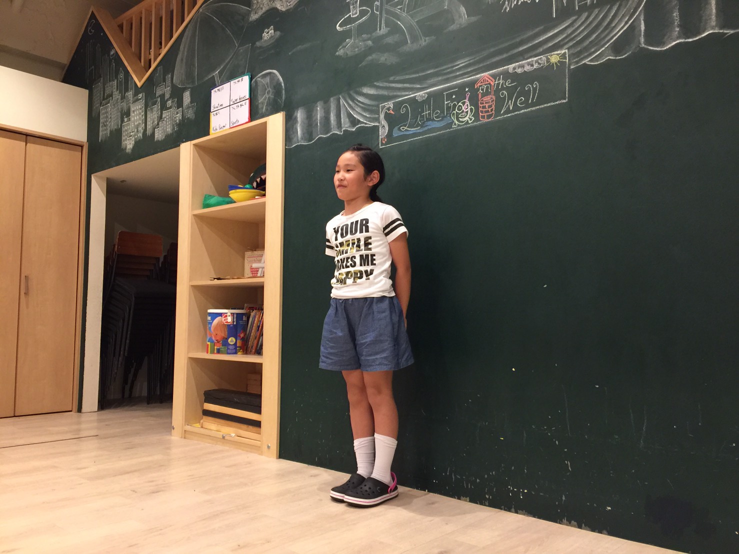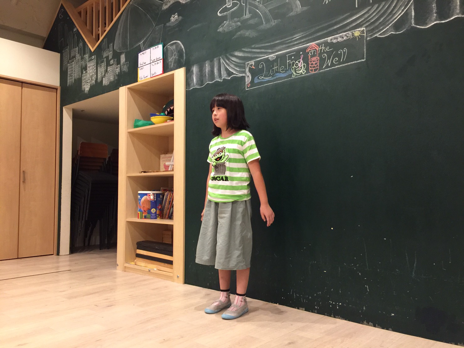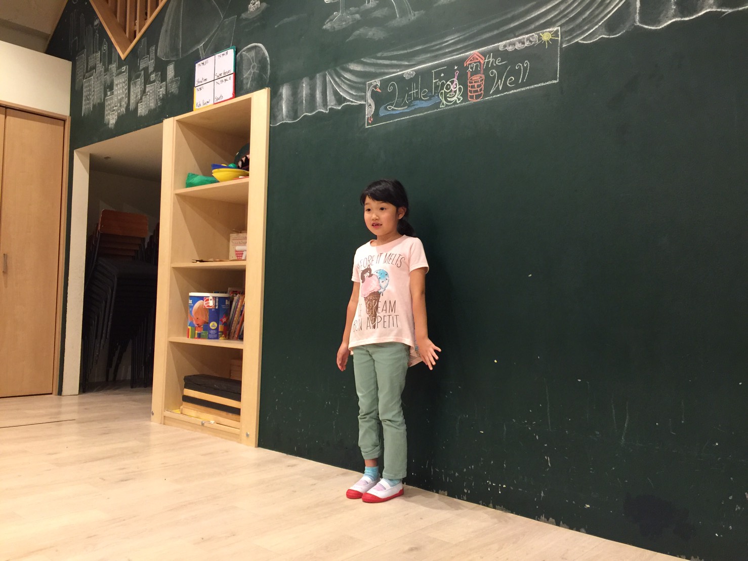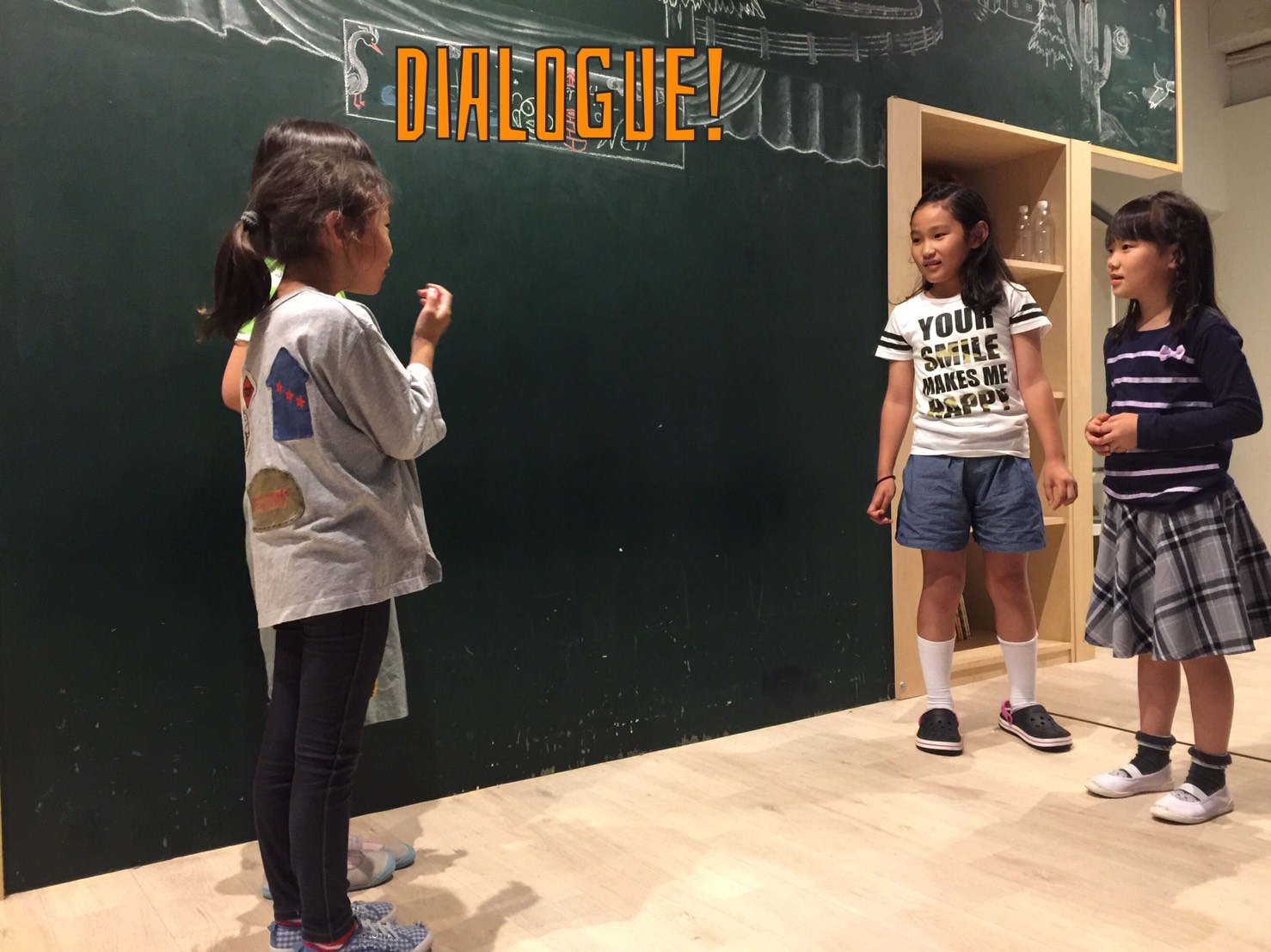 ”I like Okonomiyaki.”(私はお好み焼きが好き)、”I like chocolate. Yummy!!”(僕はチョコレートが好き。おいしい!!)と、自分たちの好きな物をまずは言って「なるほど」を引き出してくれていたり。