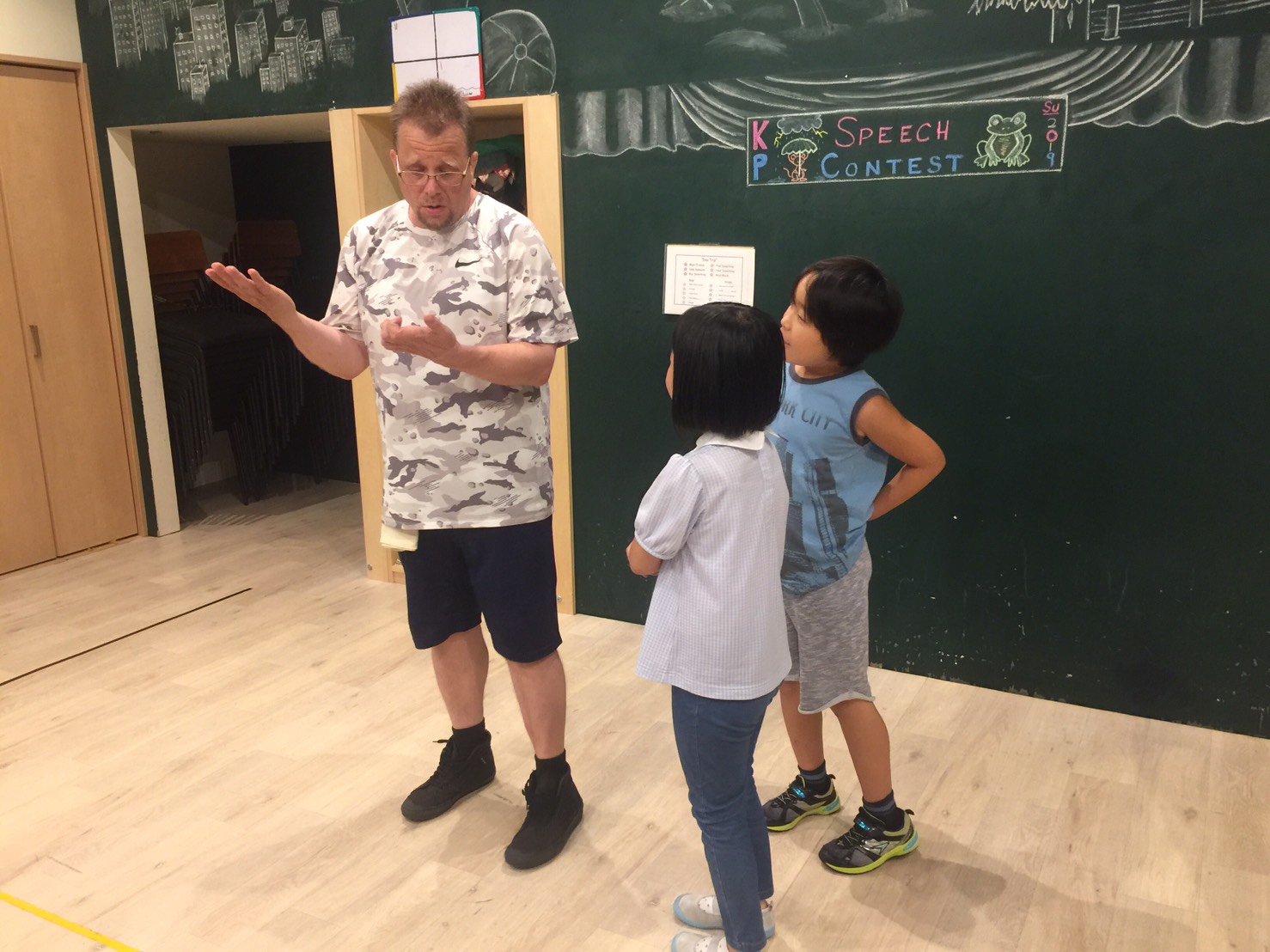 サポート側のお兄さんお姉さんも、新しい生徒さんたちに「教える」ことがまだ難しいミニ劇の時間。