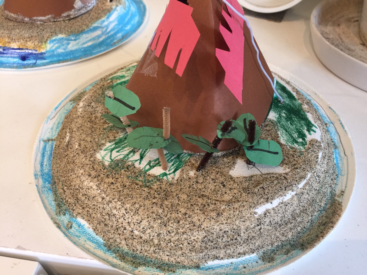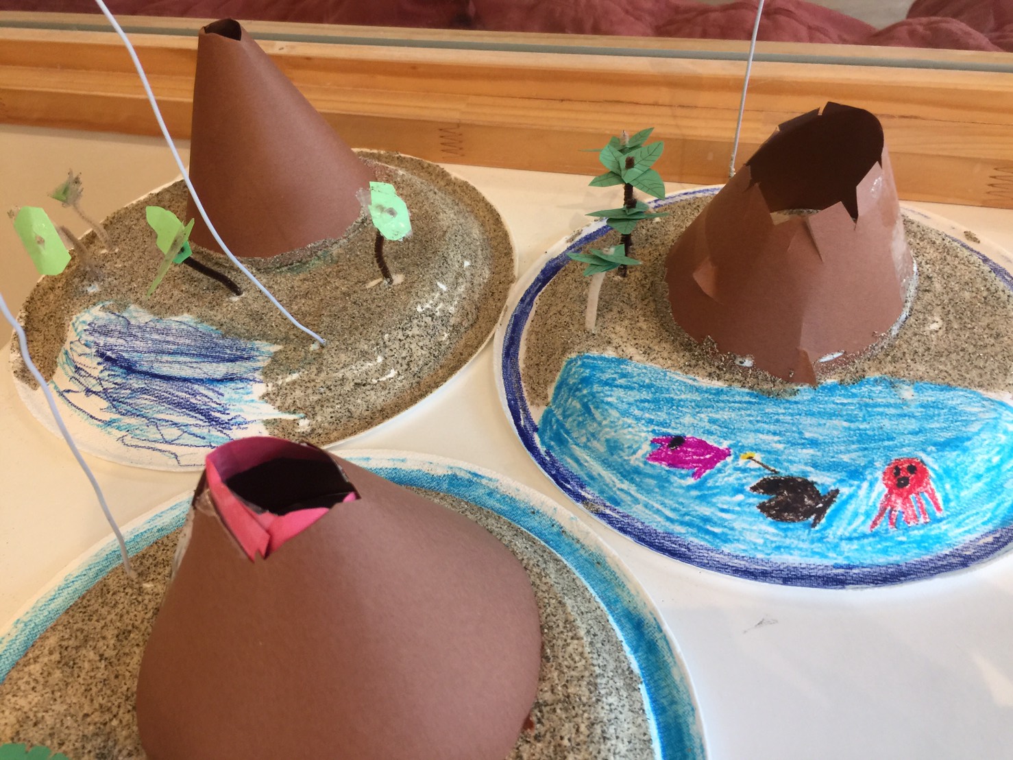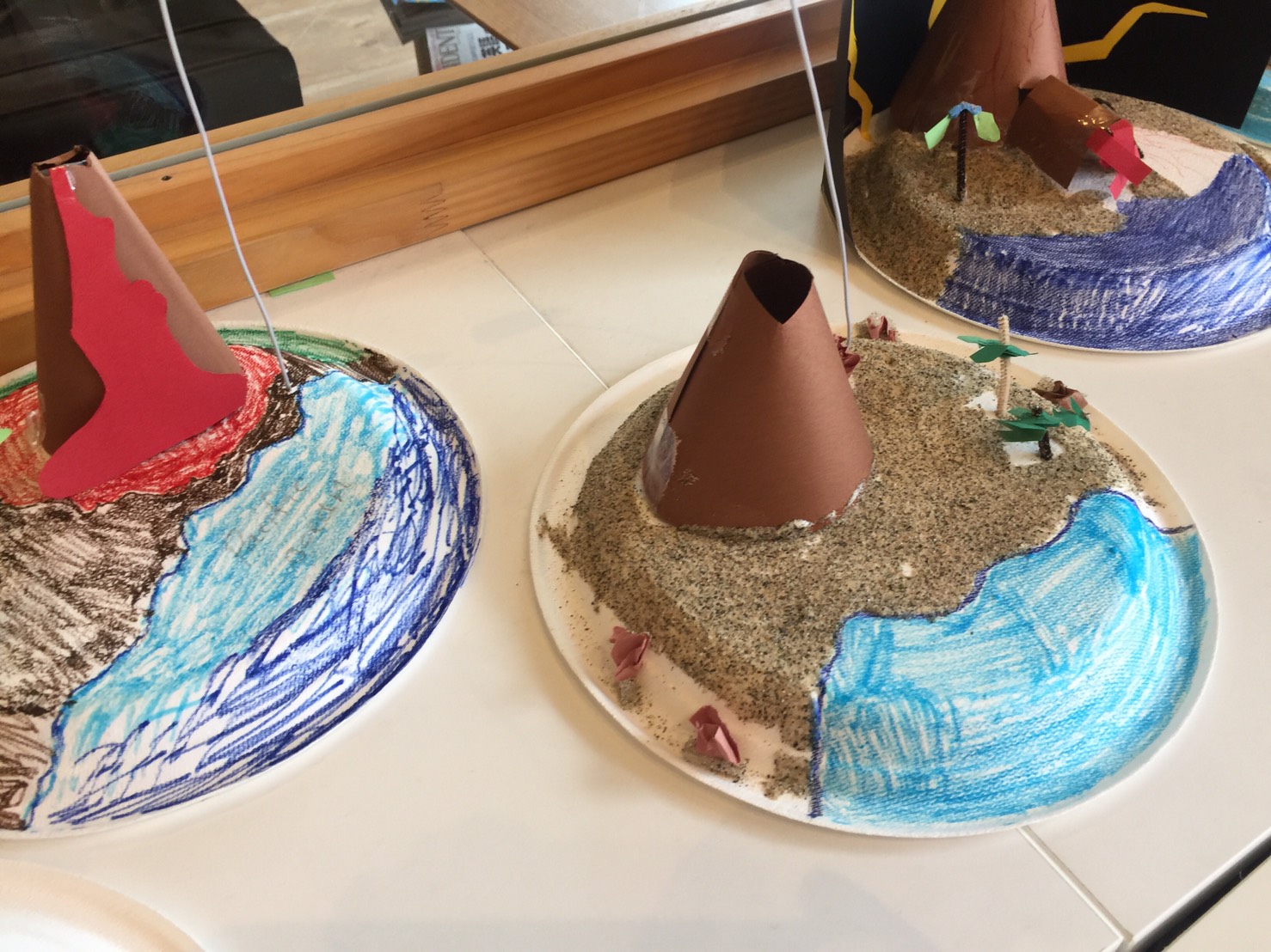 火山やヤシの木などのベーシックな部分を作ったら、あとは自分たちの好きなように好きな材料を使って、自分たちのイメージする「アイランド」を作りました。