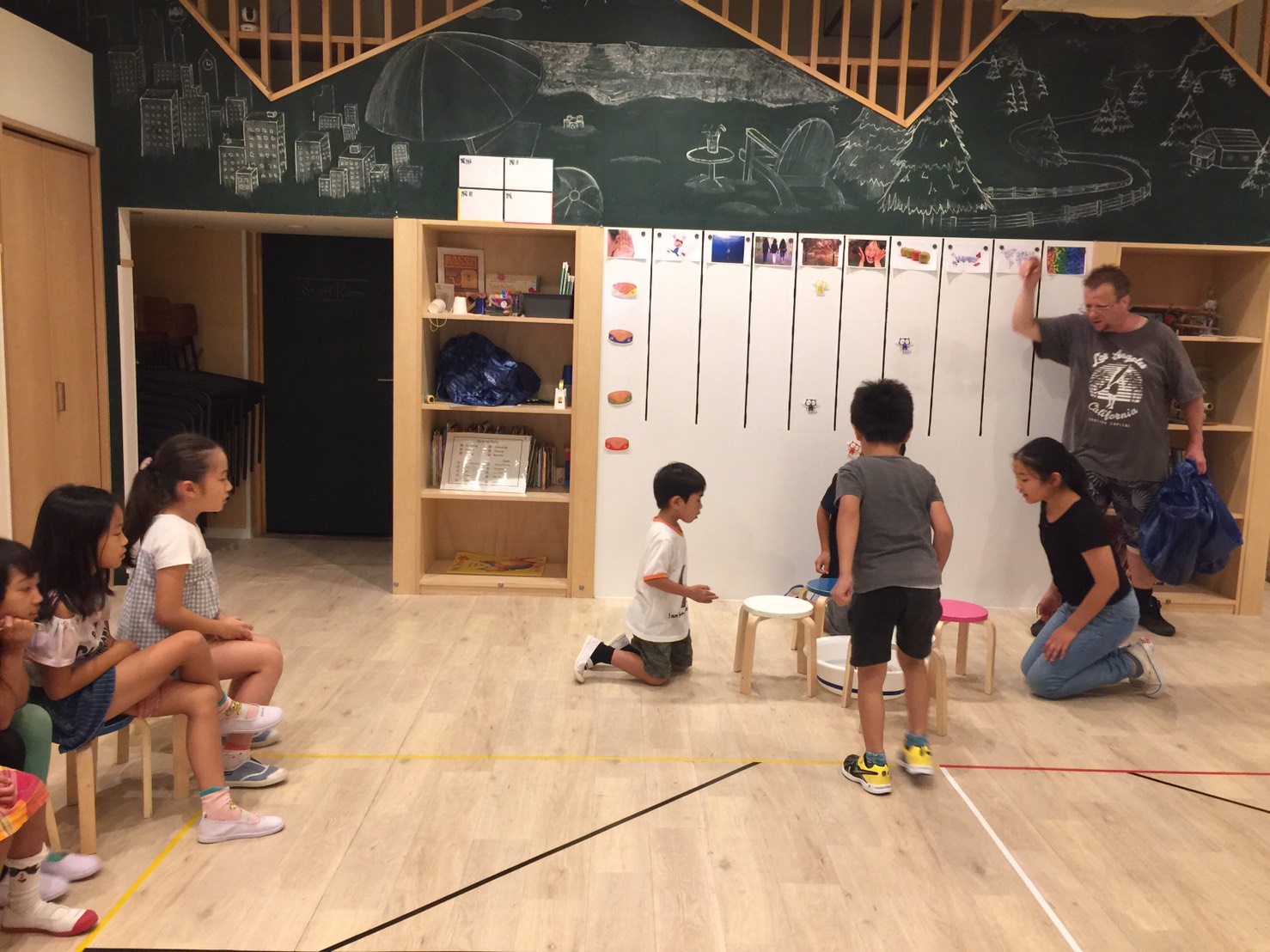 おやつの前後のグループで座っている時間に、チームのみんなとお互いに質問をする側とされる側になって繰り返し練習をしています。
