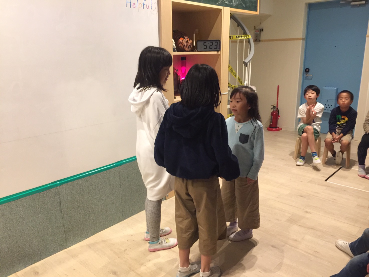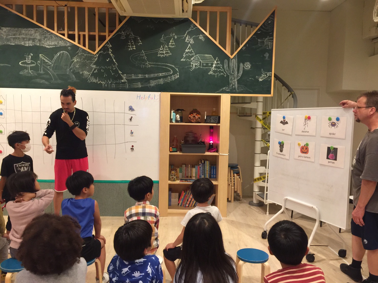 今週は”Halloween week”(ハロウィンの週)なので、”Dialogue”(劇)や”Vocabulary time”(単語の時間)、”Story time”(ストーリータイム)には、たくさんのハロウィン用語が登場しましています。