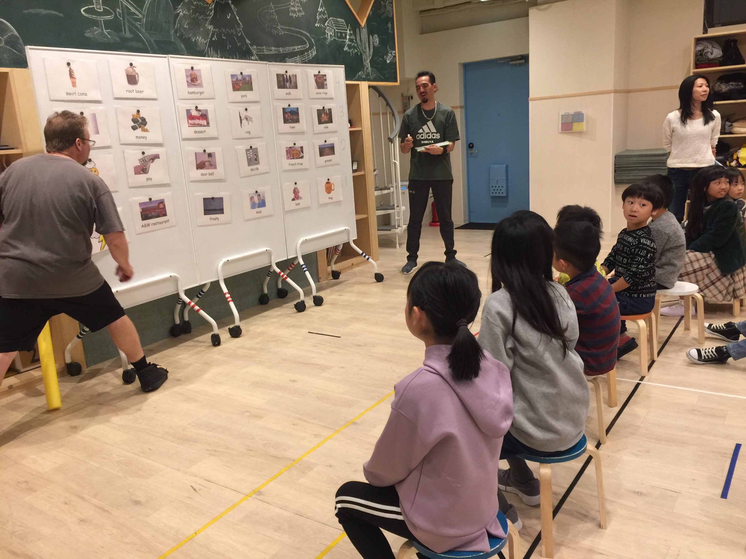 いつもは6時30分ころから行っている”Story time”(ストーリータイム)を、今週は5時からに繰り上げて練習と発表をしています。