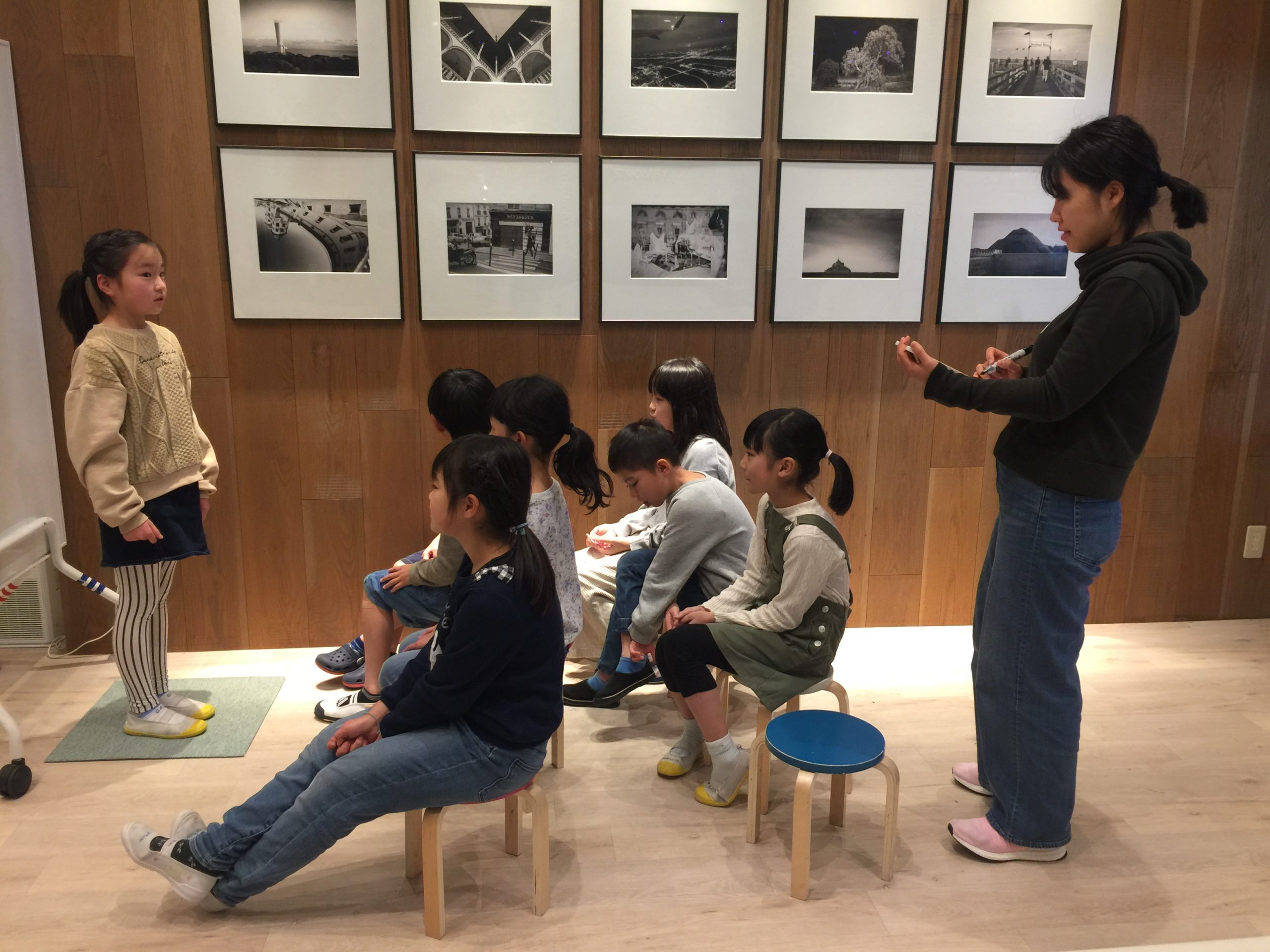 4つのチームに分かれて、それぞれのチームの前に出て大きな声でストーリーをチャレンジ。