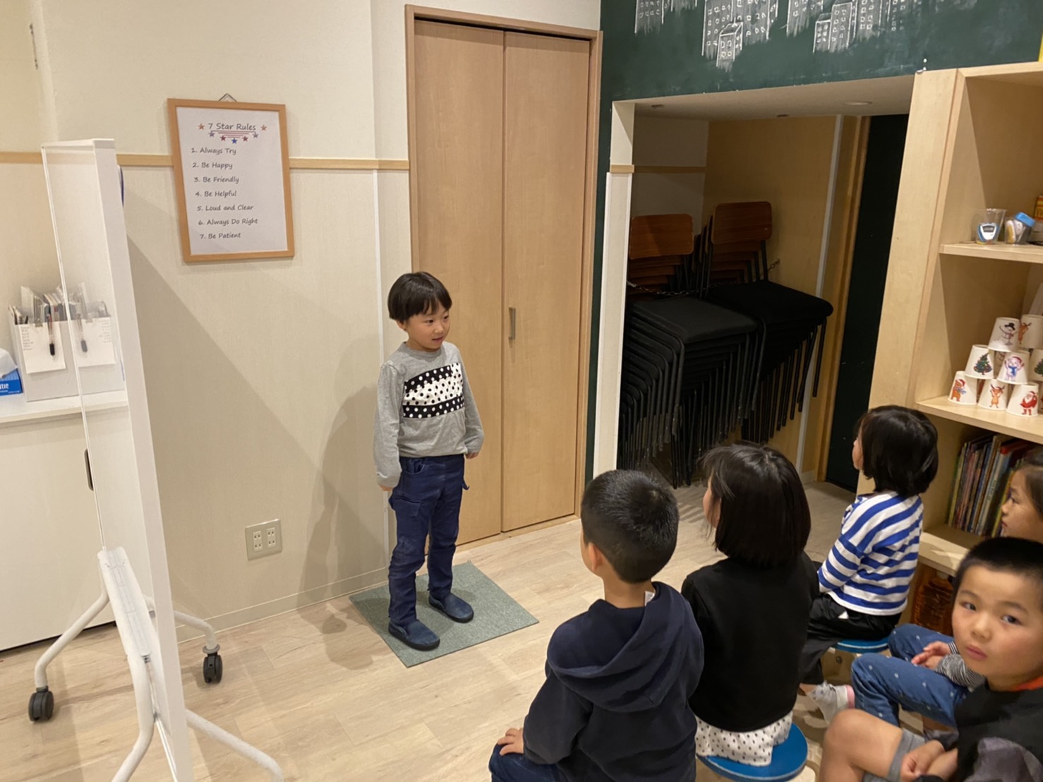 最初は難しいし恥ずかしいけど、いつも単語やゲームの時間に練習をしている内容がすべて詰まった重要な時間だからね。