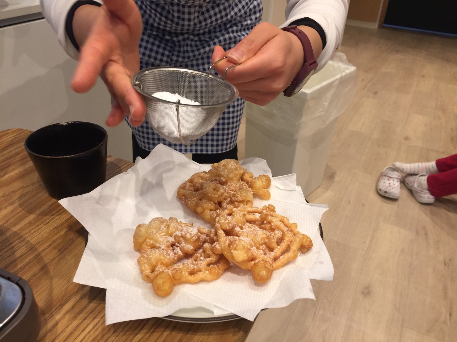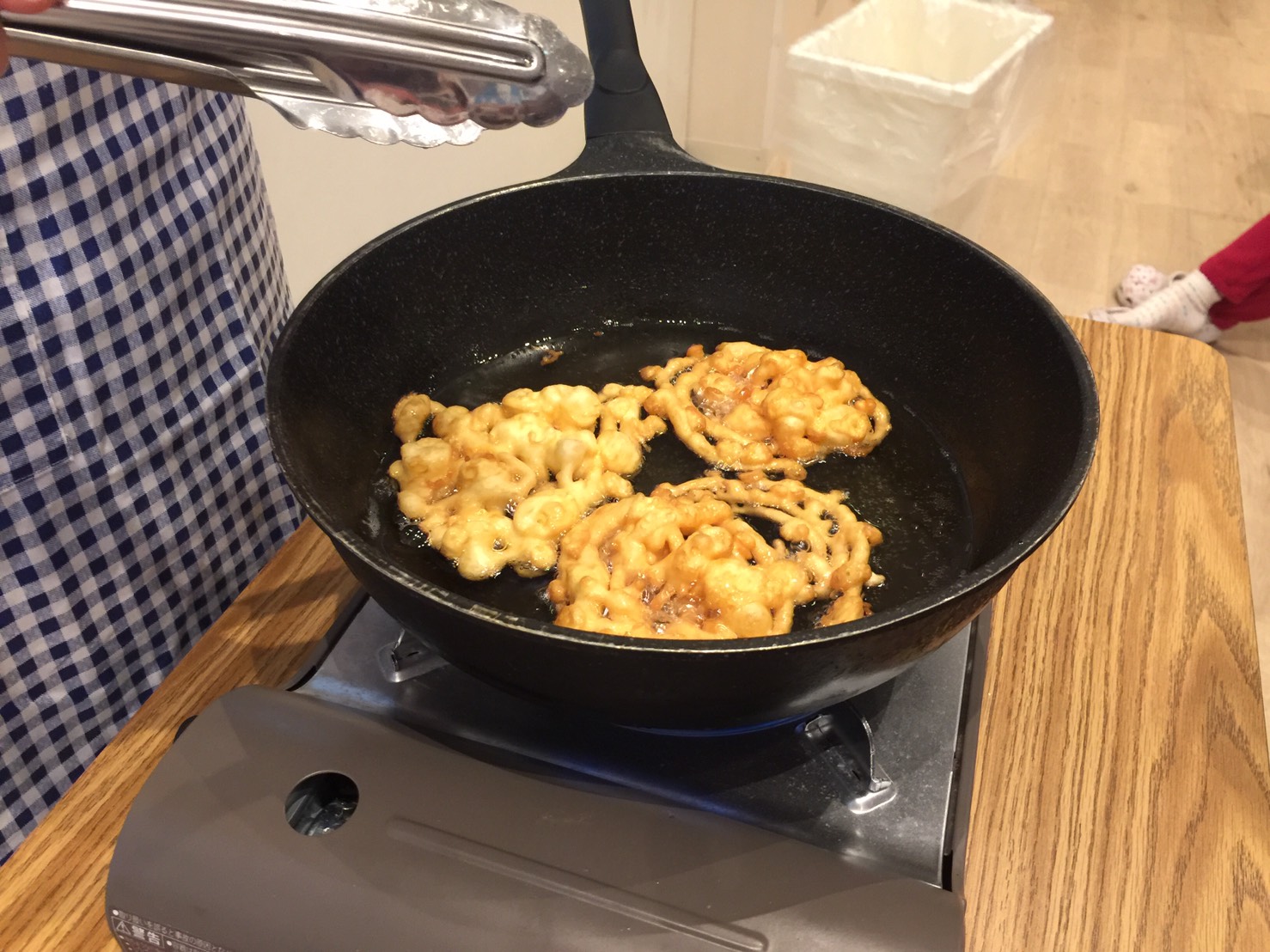 ウィンタースクール2日目のイベントは”Funnel Cake”(ファンネルケーキ作り)をやりました。