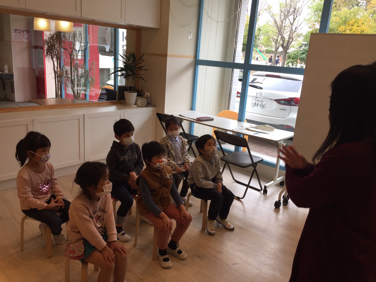 まずは一緒に練習をした後に前に出て”Pat the Cat Grows a Fish”とタイトルだけ言えたらオーケーだからね。