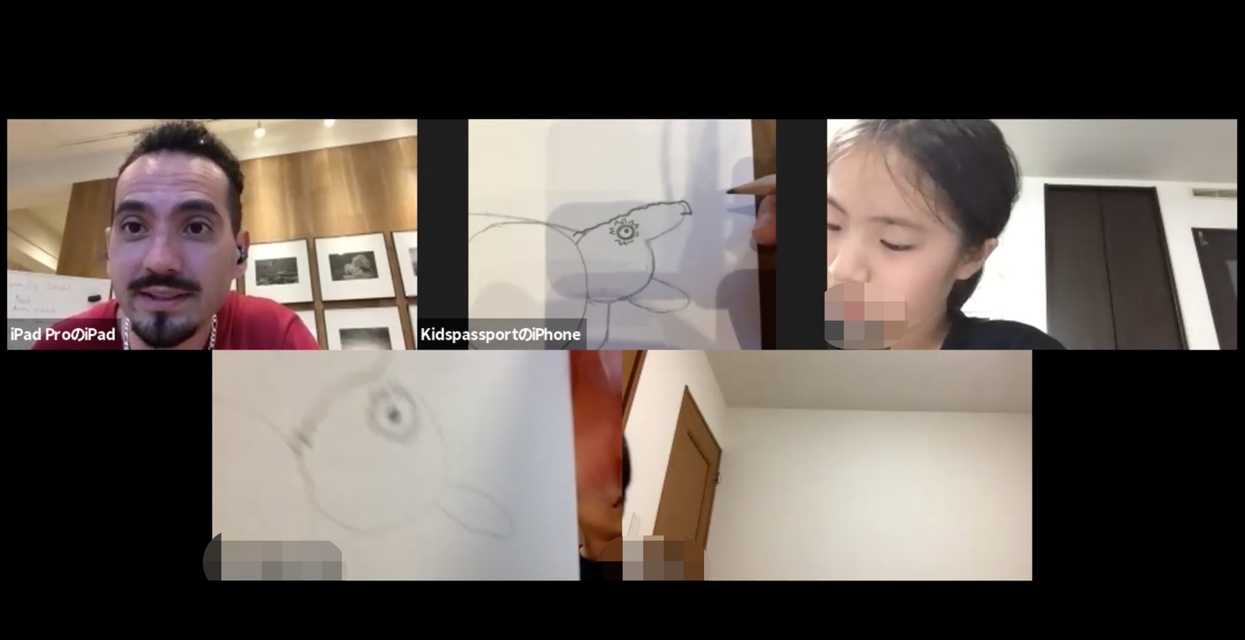 昨日のCasper先生のレッスンで描いたカメを見せてくれましたが、今日はJames先生のレッスンなので違ったスタイルのカメを描きます。