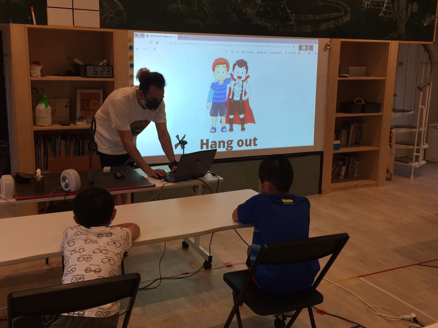 1. 先生から”What’s this?”(これはなに?)と見せられたフラッシュカードを見て単語を
