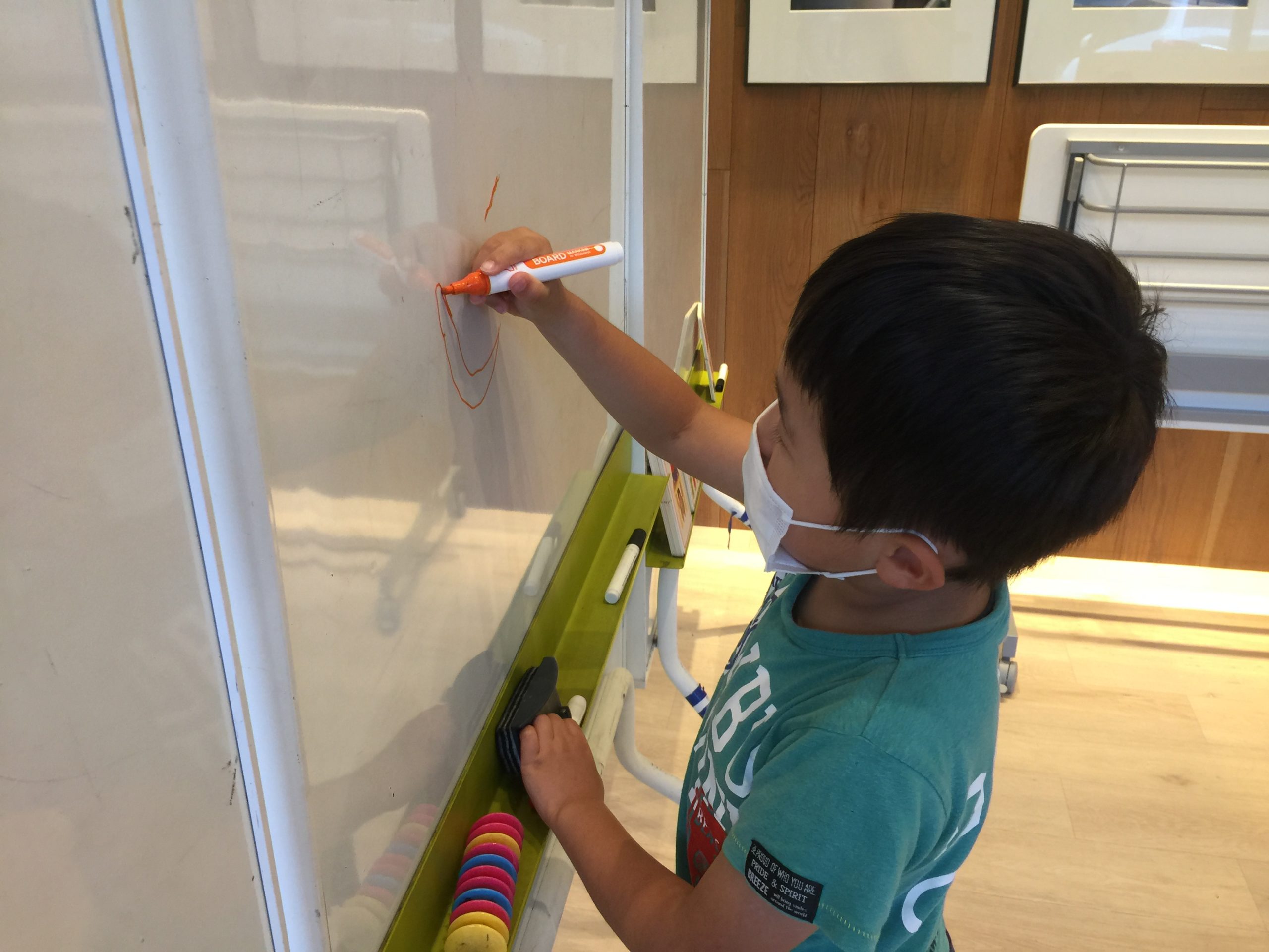 お手伝いが必要な場合は手をあげて”Help me”(手伝って)というと先生が回って一緒に練習をしてくれます。