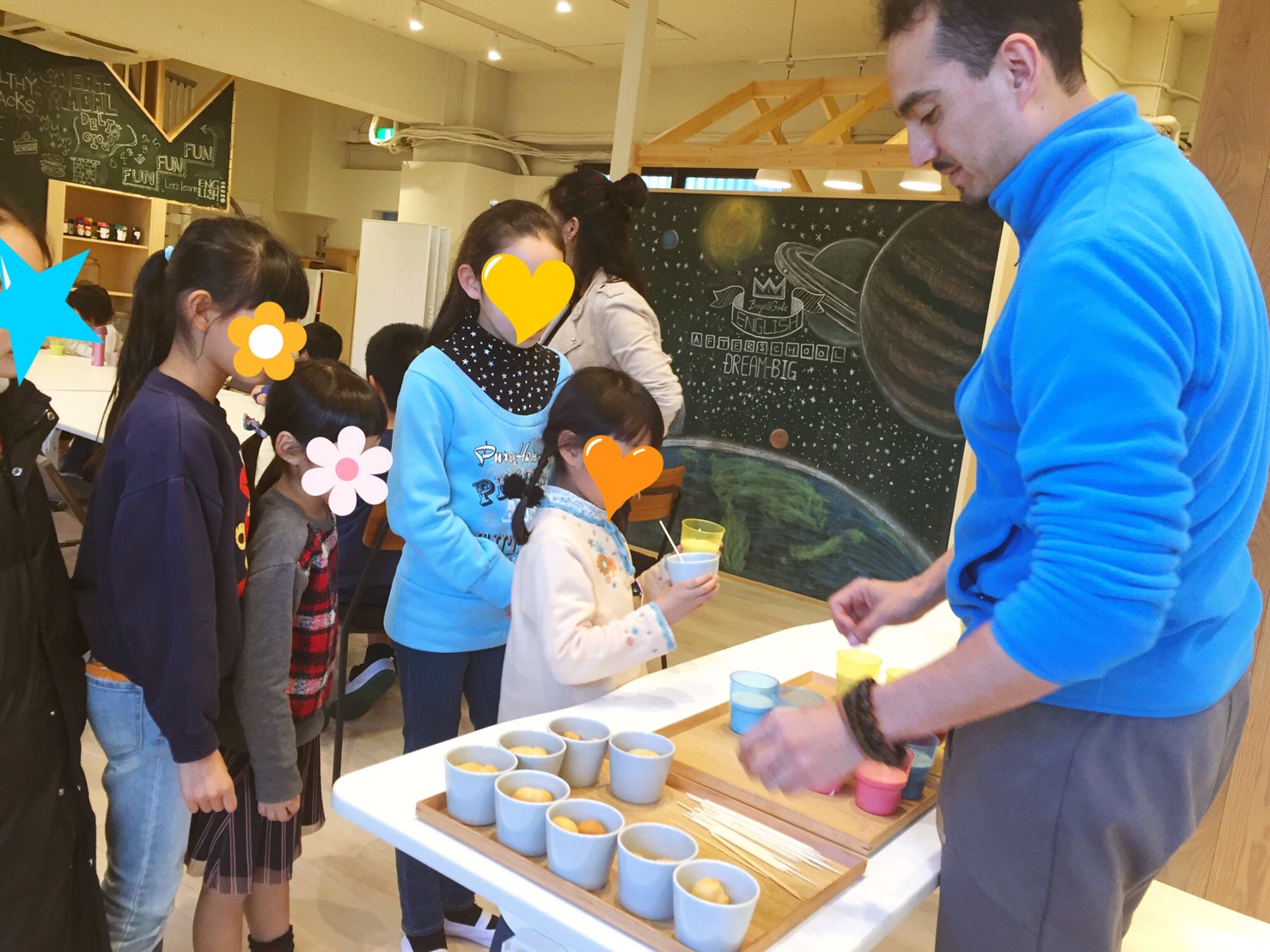どんな質問が来るのかな?とドキドキした表情でしたが、問題なく全員がスムーズにオヤツをもらって”Let’s eat!!”(いただきます!!)