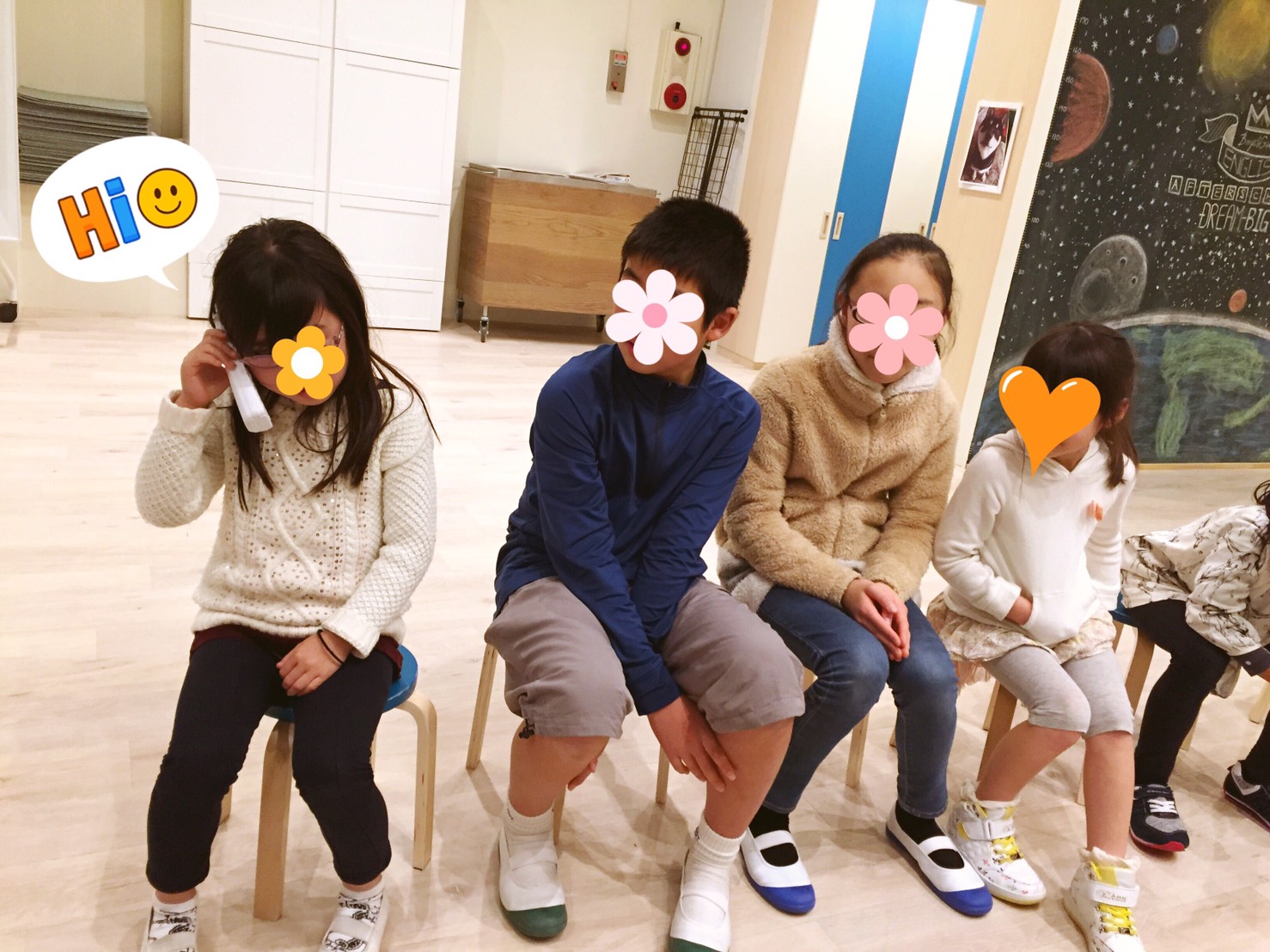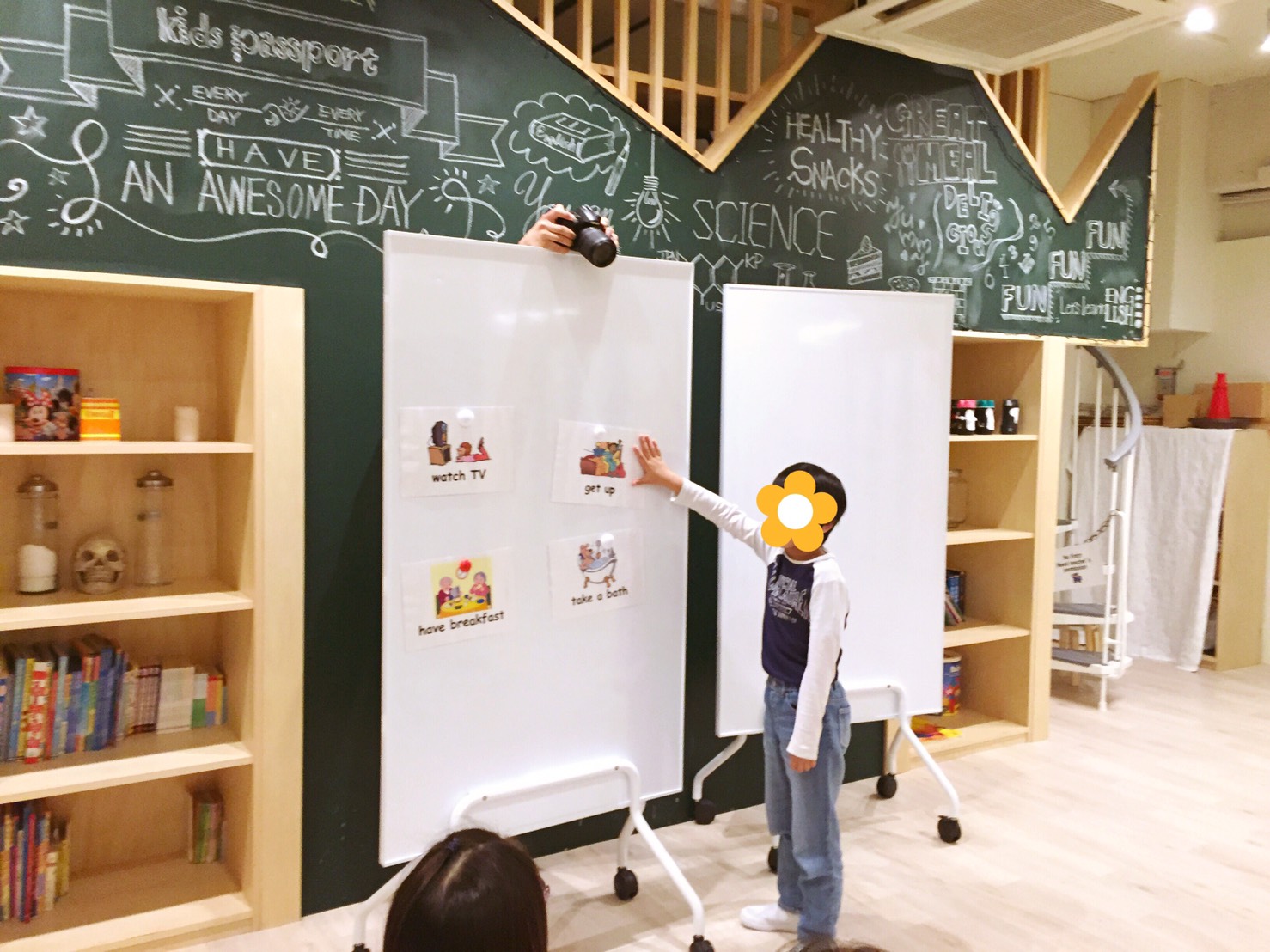 最後の生徒さんは、聞いた「秘密の言葉」のフラッシュカードを手に取ってみんなの前で大きな声で発表をします。