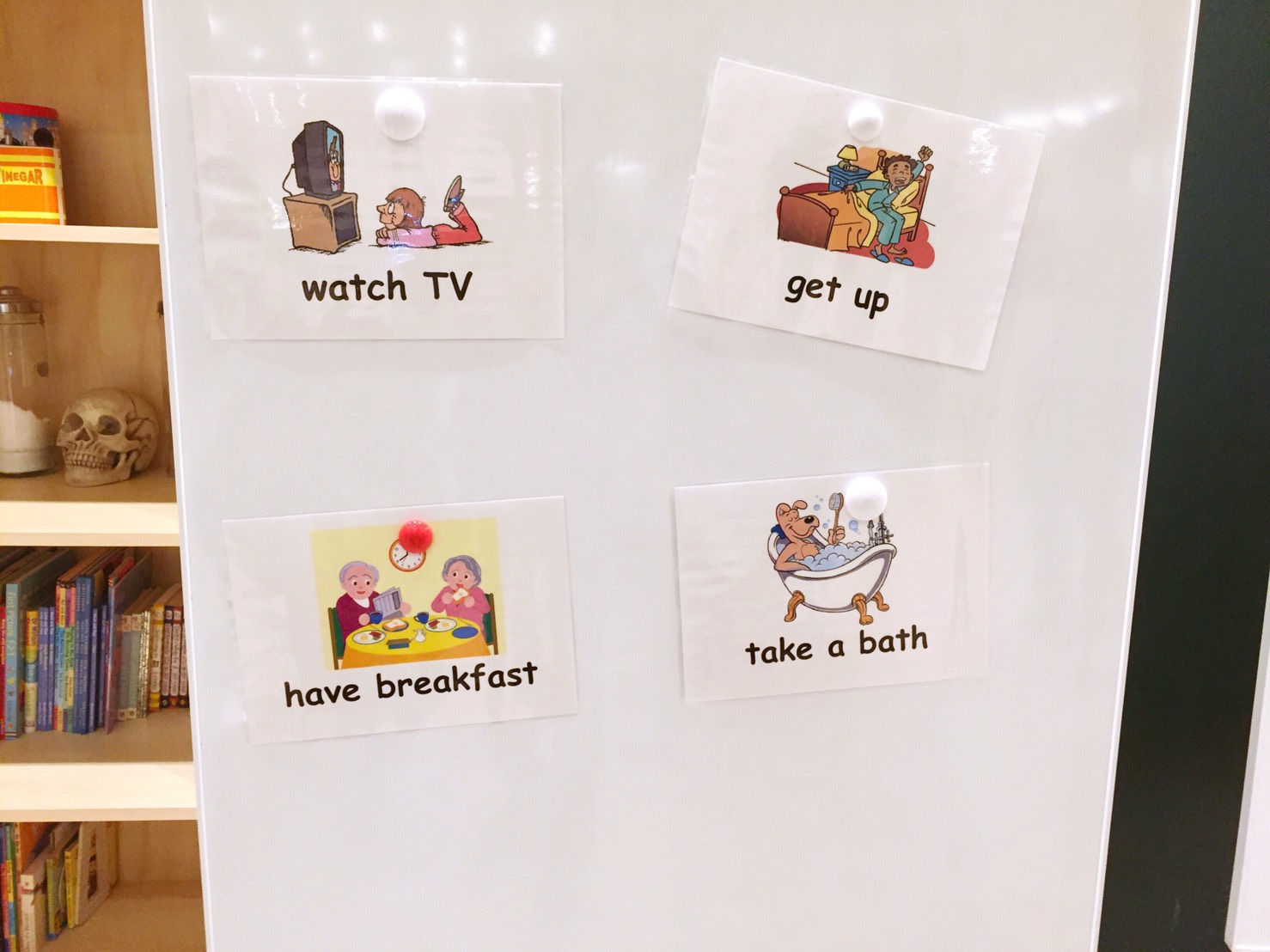 “Have breakfast”(朝ごはんを食べる)“Get up”(起きる)