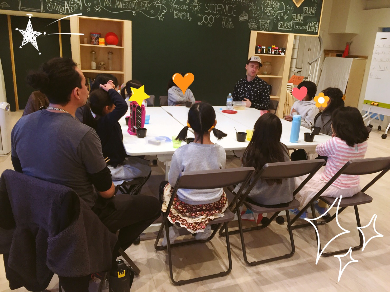 先生や他の生徒さんがセンテンスの例を言ってお手伝いしてくれるから大丈夫。