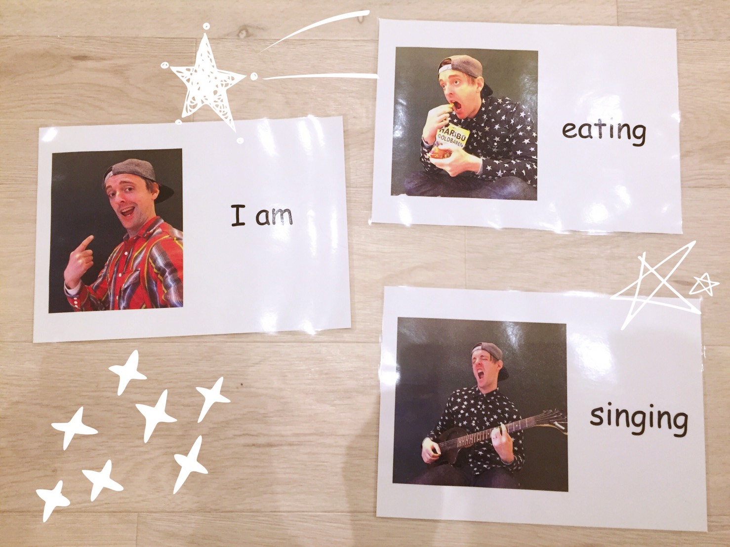 生徒さん:”Eating pizza!!”(ピザを食べている!!)