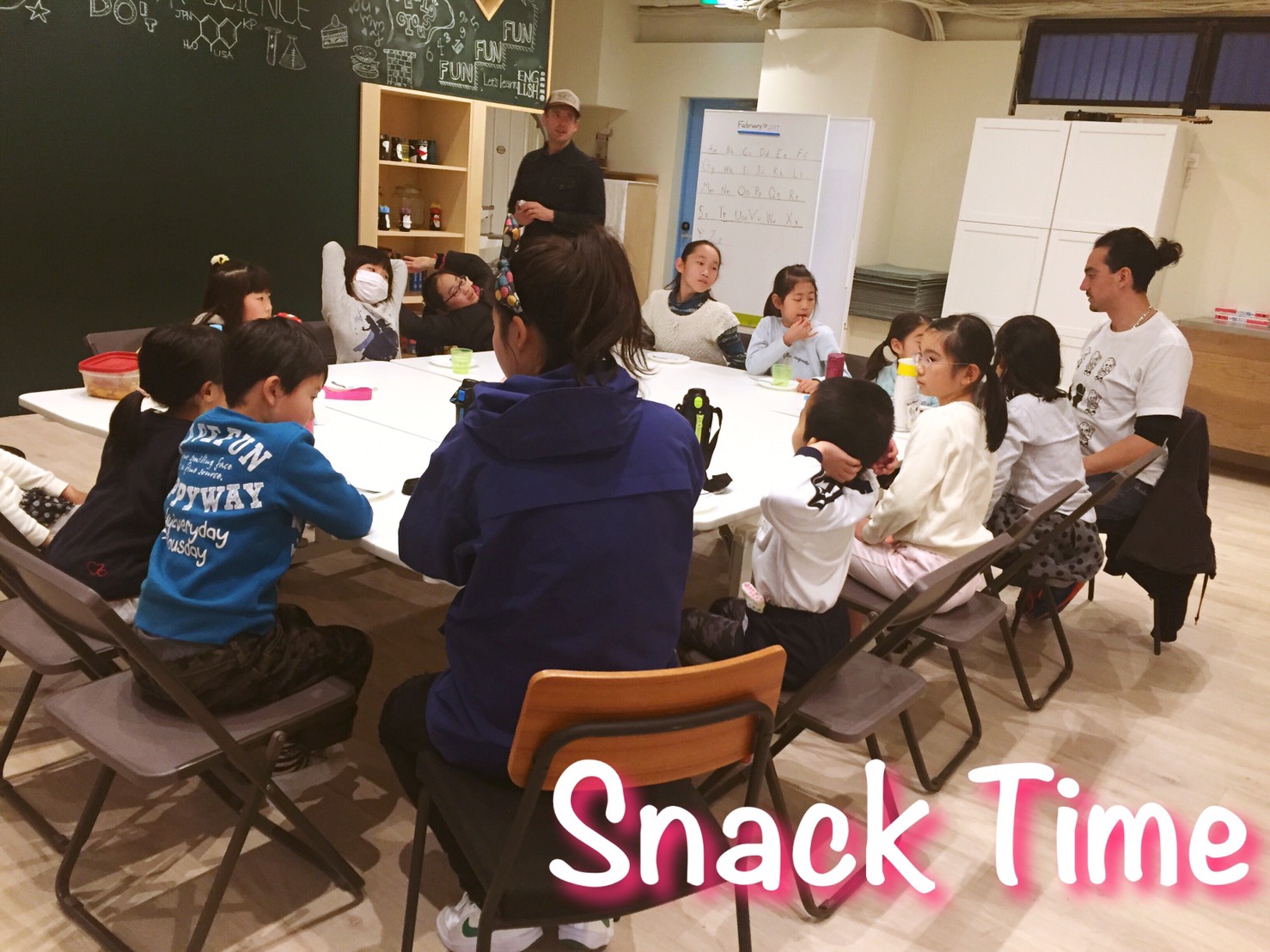 宿題やテキストが終わり、スナックタイムの時間ではみんながランダムにいろんな話をします。今日はマイク先生が天気の話をみんなに聞いていました。