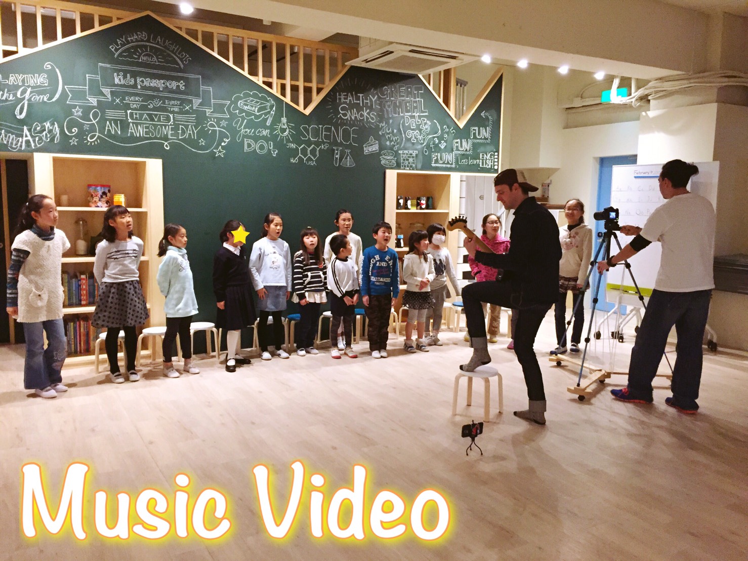 生徒さん:”A cool song?”(カッコいい曲?)マイク先生:”Yeah. I wrote the song.”(うん。先生が書いたんだ)