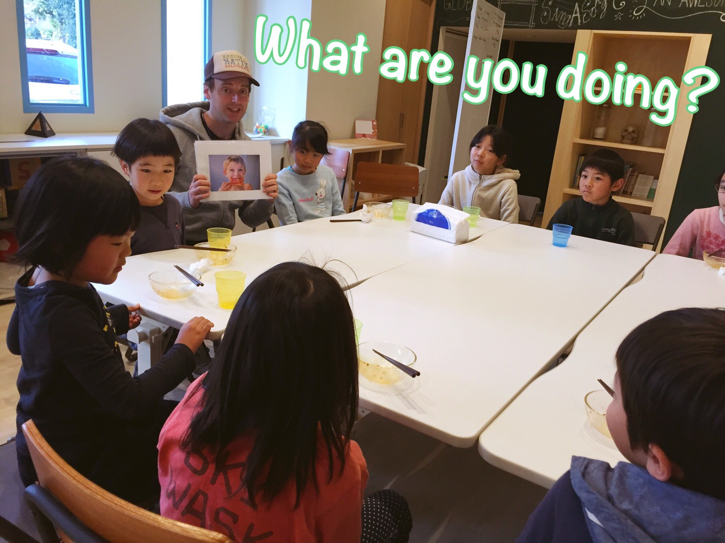 “Wow. You guys did a wonderful job!! Can I have one?”(ワオ!がんばったんだね!!1個ちょうだい)と言った所、みんなの答えは共通して”No!”(ダメ!)でした(笑)