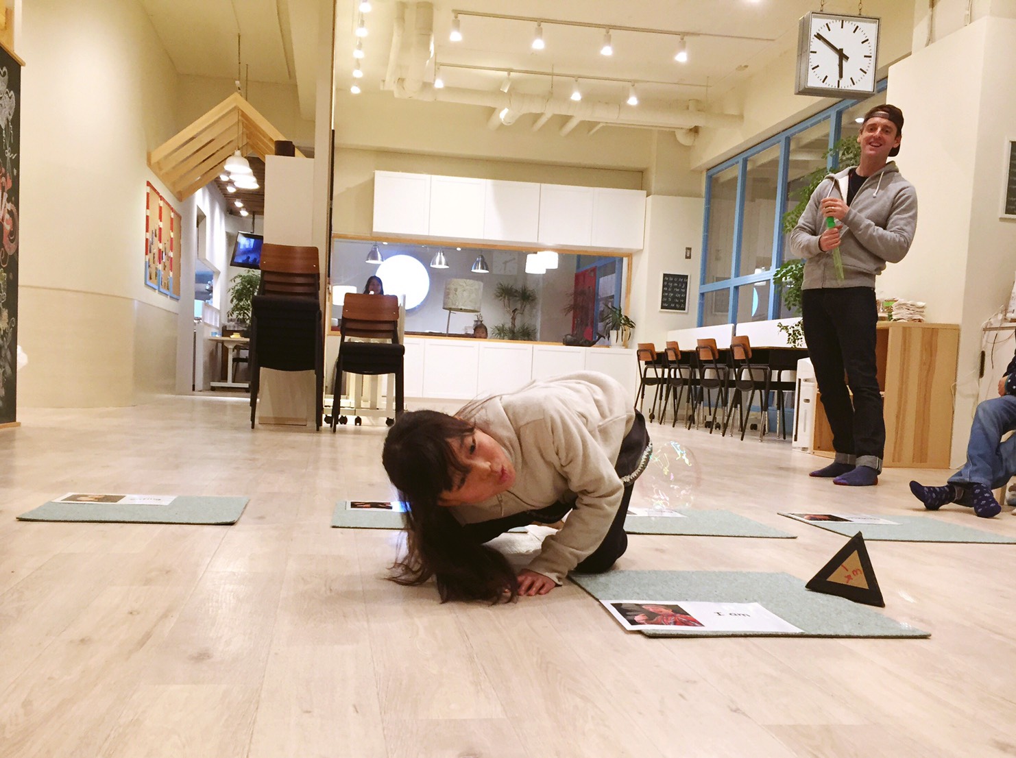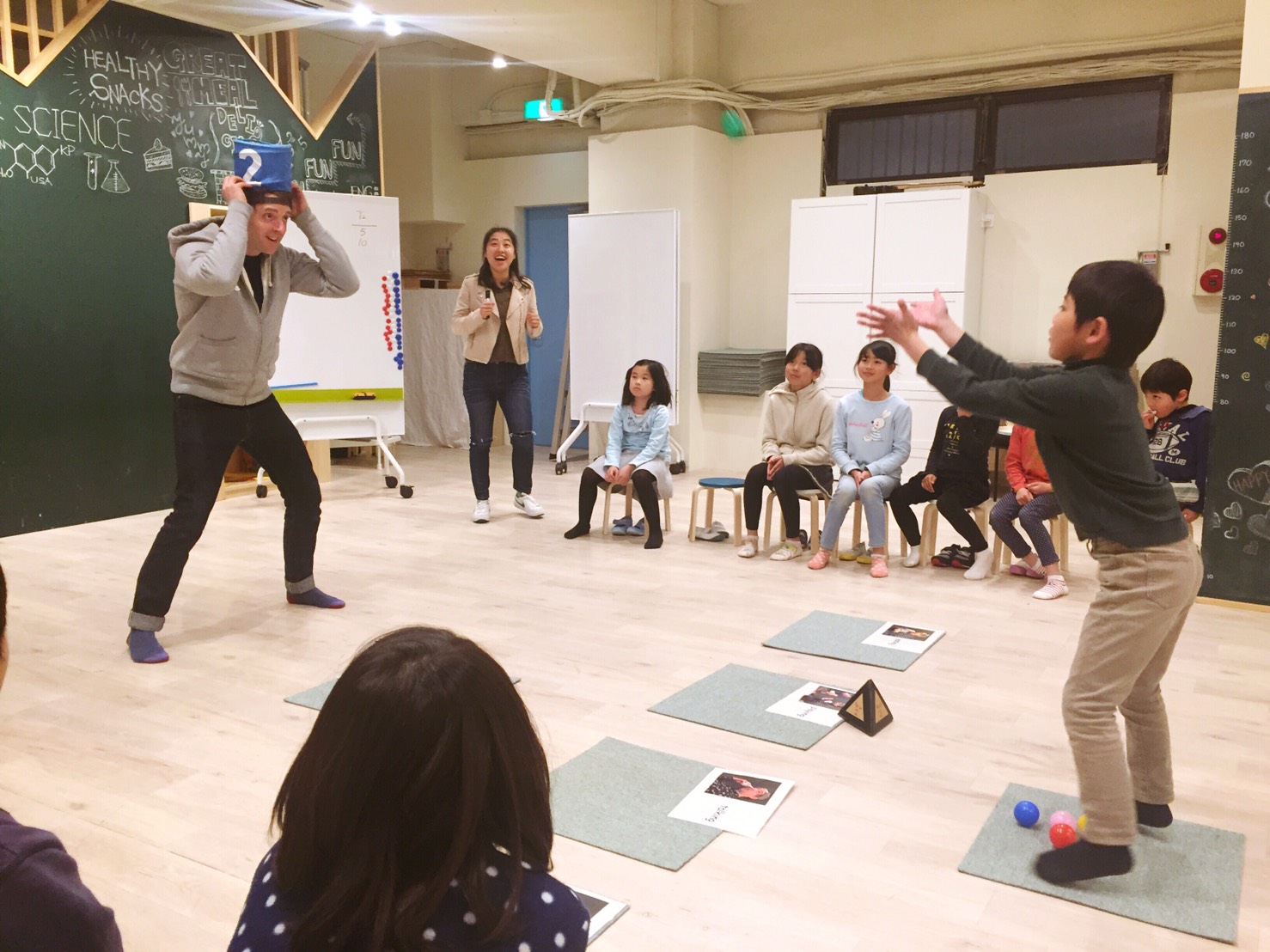 “I am ___ing.”(私は○○しています)を使ってゲームをしました