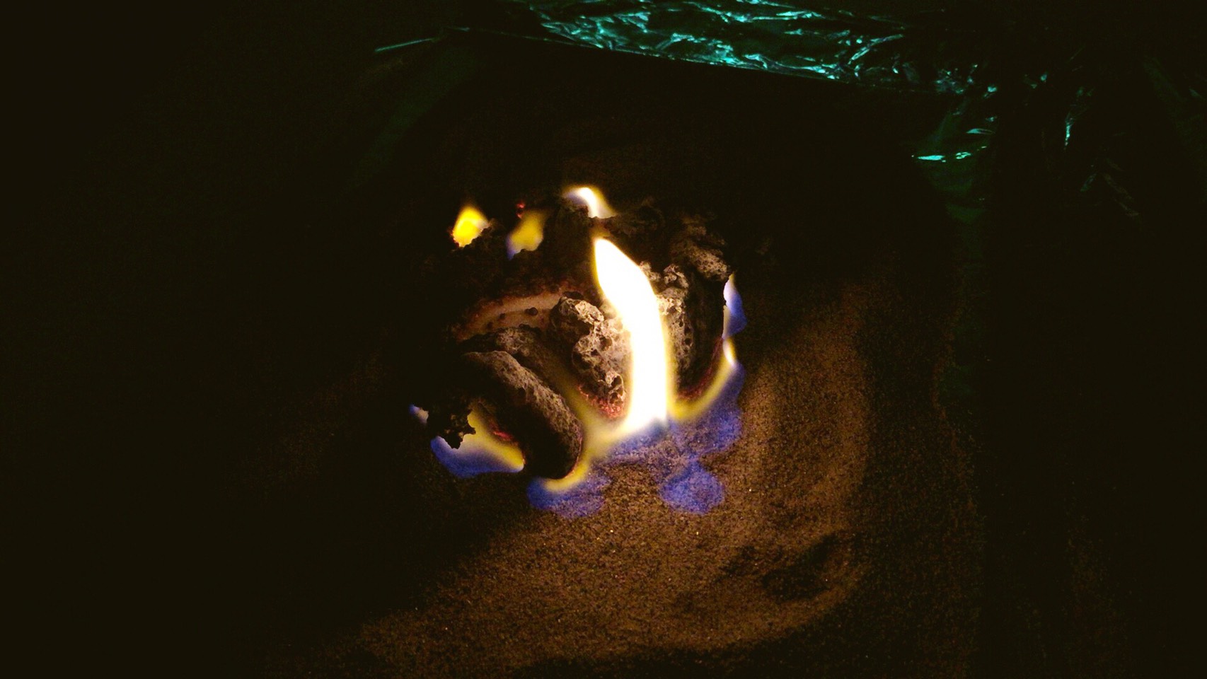 砂糖と重曹を混ぜた物を乗せて火を付けます。