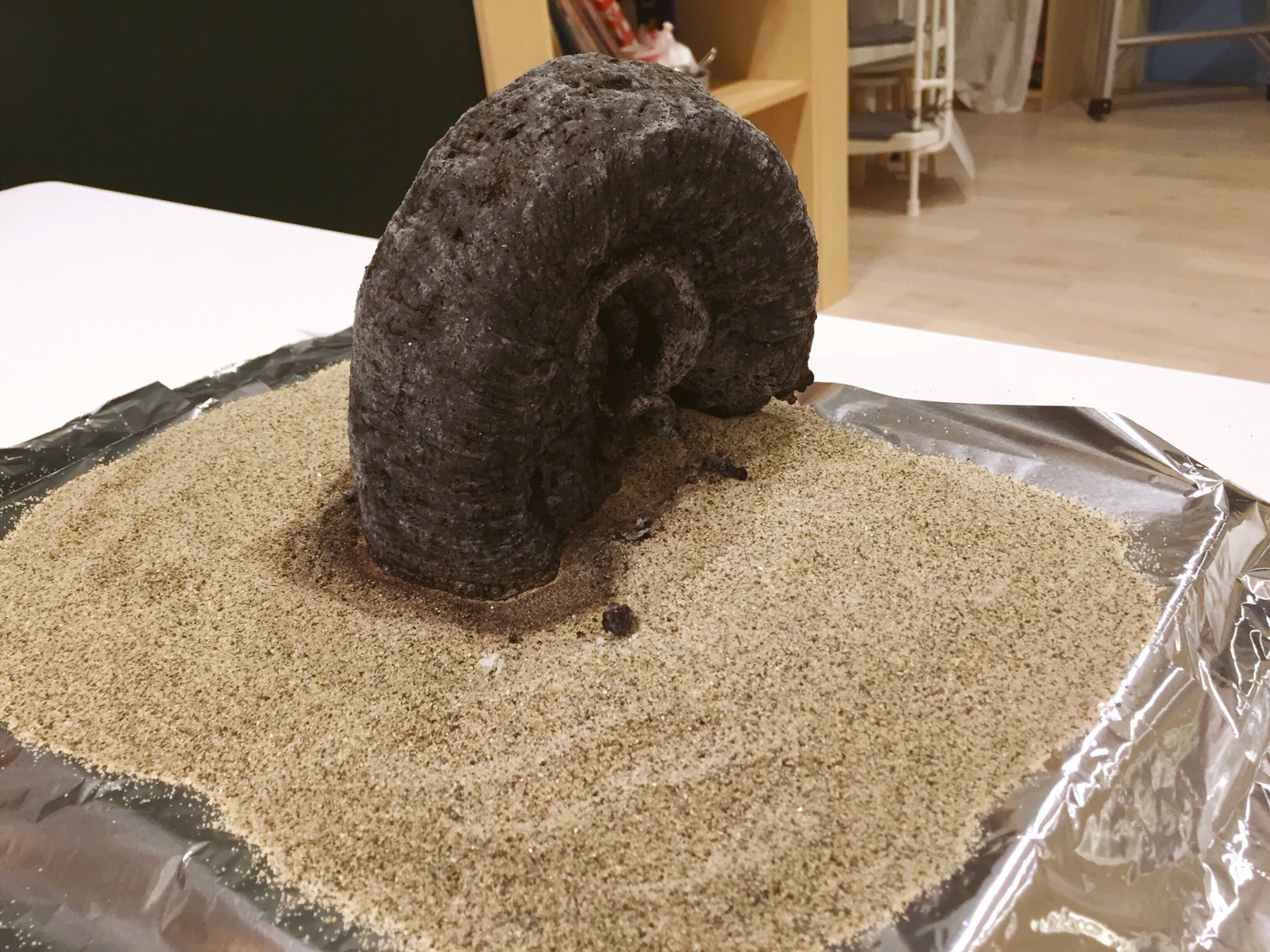 時間が経つと、なんと砂糖と重曹の固まりがどんどん大きく膨らんで行きました!!