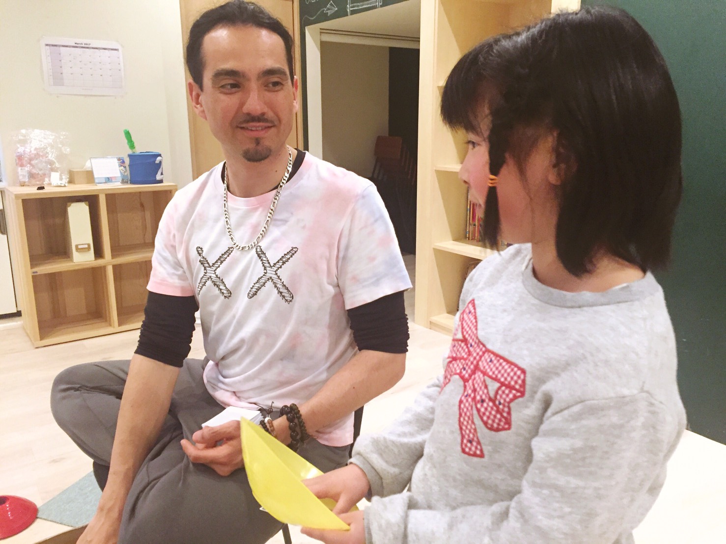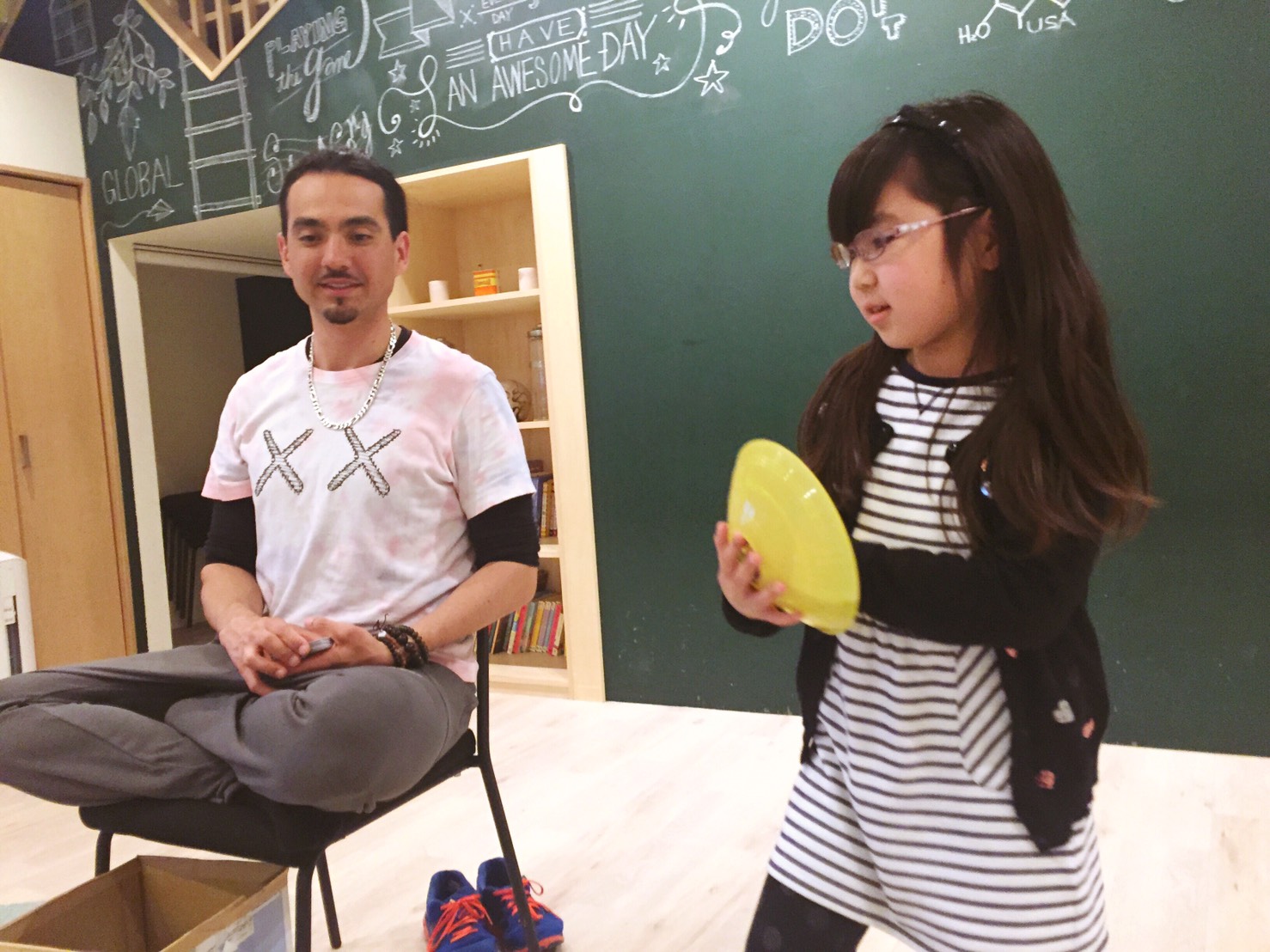 生徒さん:”On the box.”(箱の上)