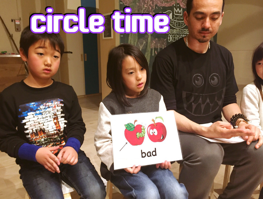 夕方18時30分頃〜19時までの時間は「サークルタイム」という時間を設けて、みんなで輪になってセンテンスの練習を行います。