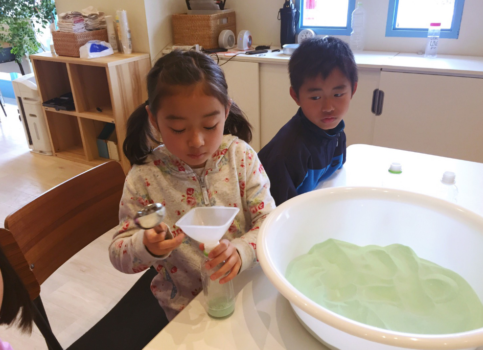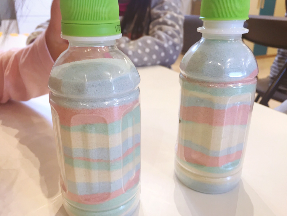 午前コースのイベントは”Sand art bottle”(砂のアートボトル)