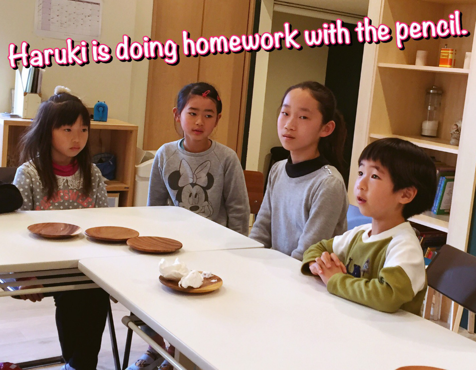 先生:”Next is… S. Nice hair.”(次は・・・Sちゃん。ステキな髪だね)