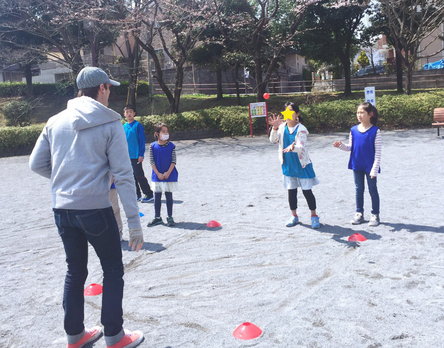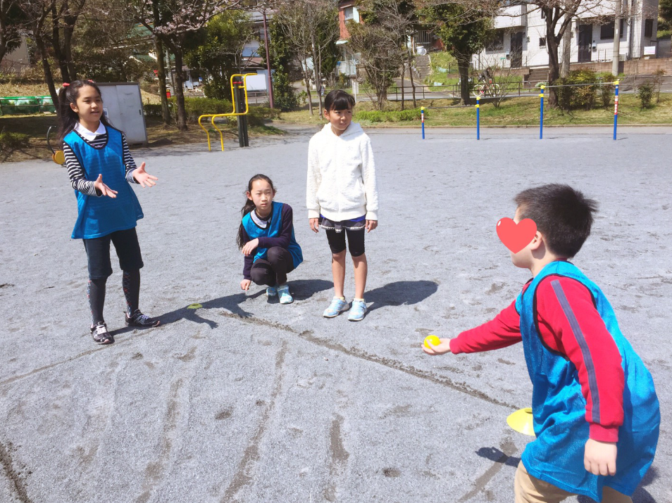 “I will throw the balls so you have to catch it and run.”(先生がボールを投げるから、キャッチして走ってね)
