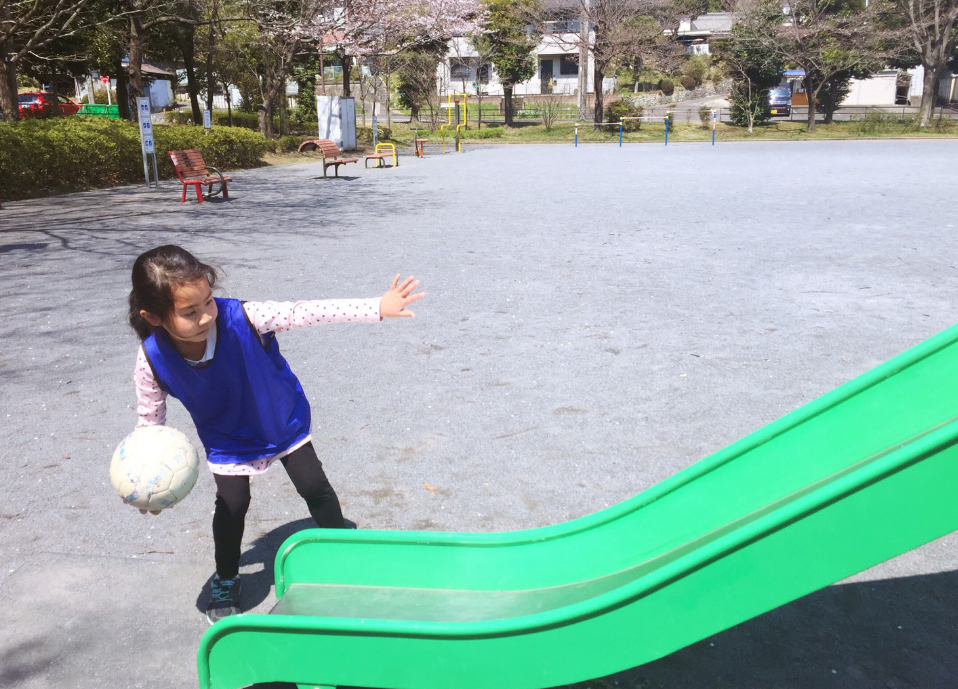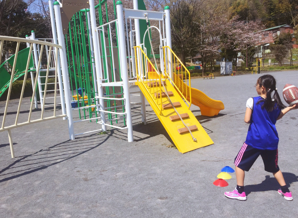 公園の遊具を使って障害物競争でタイムを競い合いました。