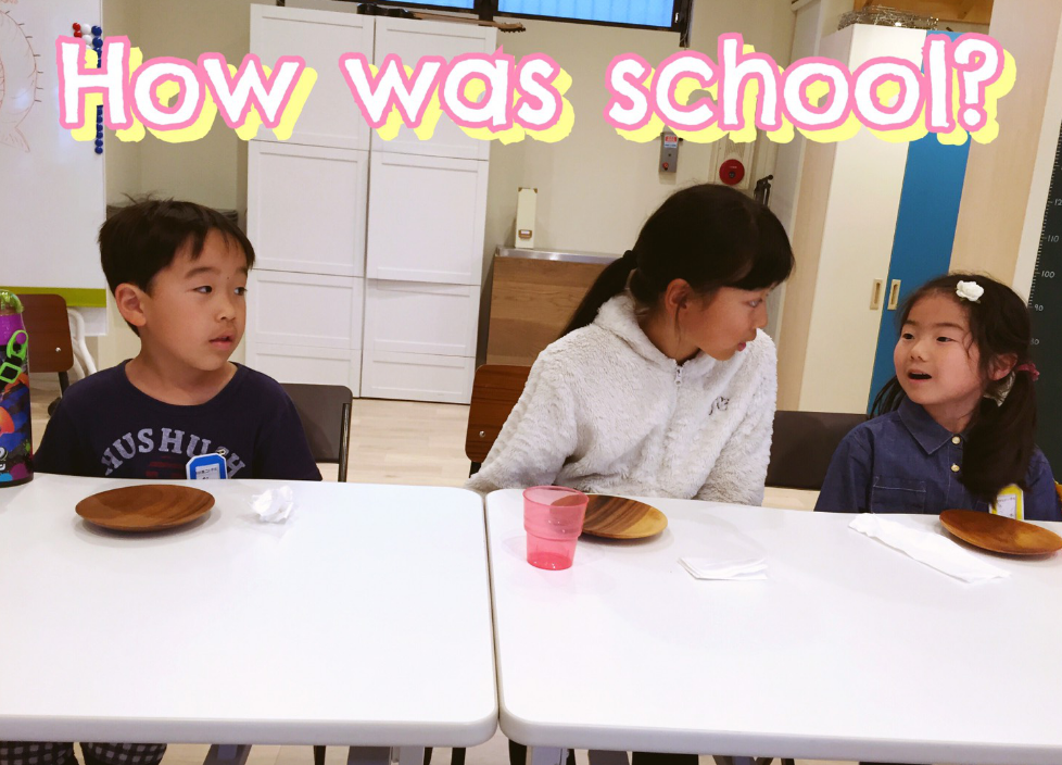 おやつの時間のテーマセンテンスは、“How was school?”でした。