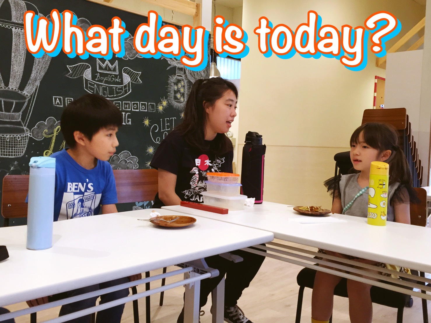先生:”No. What DAY is today?”(違う。何曜日ですか?だよ)