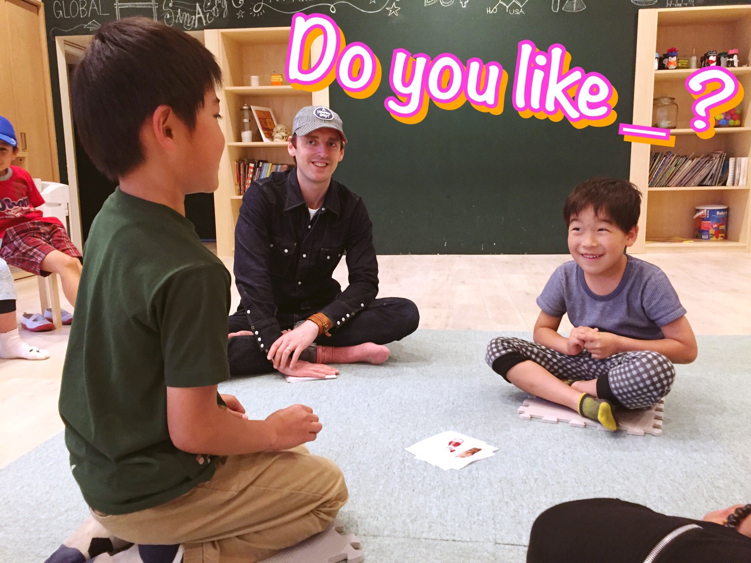 サークルタイムでは、指定の単語を使って、センテンスを作る練習をしました。